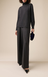 One of the first luxury ready-to-wear houses, Givenchy has been sensuously reinterpreting the codes of elegance, sophistication and femininity since it was founded in 1952. Today, Creative Director Matthew M. Williams upholds the legacy of Hubert de Givenchy with timeless designs that enhance feminine beauty. Spun entirely from wool melange, these tailored trousers feature a high, flattering waist and roomy straight-cut leg. PRODUCT DETAILS - Fall/Winter '24 - Concealed zip and hook fastening along front - Composition: 100% Wool - Dry clean only - Made in Italy SIZE & FIT - Our model is wearing a size FR 34 - Model is 5'11" with a 31.5" bust, 23" waist, and 34.5" hip - Designed for a relaxed fit
