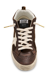 Mid Star distressed crystal-embellished leather and suede high-top sneakers Brown