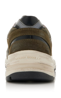 Alessandro Gallo and Francesa Rinaldo are the husband and wife duo behind Golden Goose, fusing fine Italian craftsmanship with cool, contemporary style. An off-duty model favorite, their signature skate shoes are distressed by hand to give them an authentic vintage feel. The 'Running Dad' iteration is crafted from buttery suede with a borrowed-from-the-boys aesthetic in mind. PRODUCT DETAILS - Lace-up fastening - Composition: 40% cow leather, 37% polyurethane, 19% polyester, 3% polyamide, 1% glass; Lining: 77% polyurethane, 14% cotton, 4% cow leather, 3% polyester, 2% viscose; Sole: 100% rubber - Imported