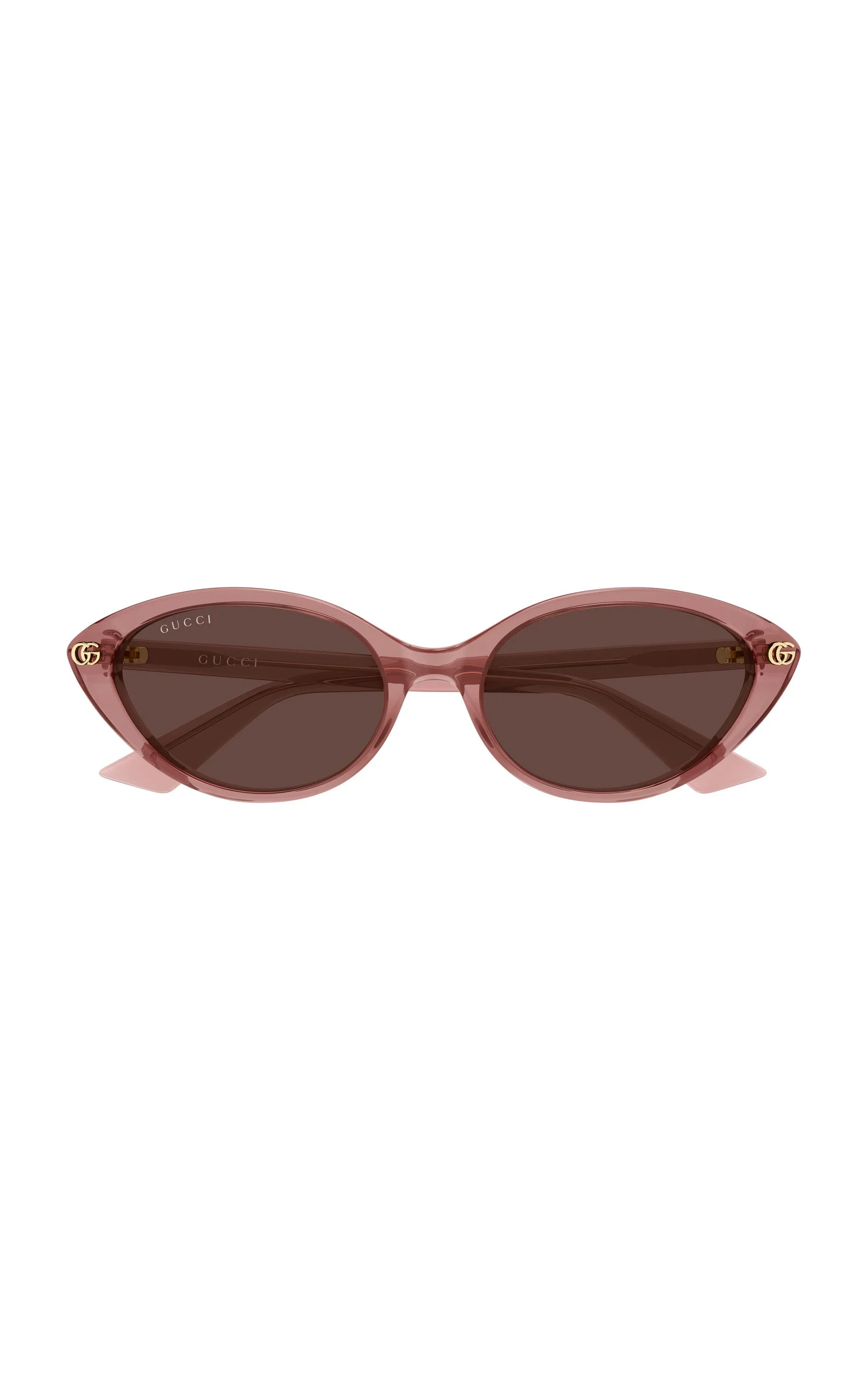 Drawing inspiration from archival elements of the House of Gucci, the newest eyewear collection is an eclectic mix of shapes and styles reminiscent of the ‘70s and ‘80s. These sunglasses have cat-eye frames made from acetate with brown lenses and 'GG' hardware at the temples. PRODUCT DETAILS - Composition: recycled acetate - 100% UVA/ UVB protection - Made in Italy