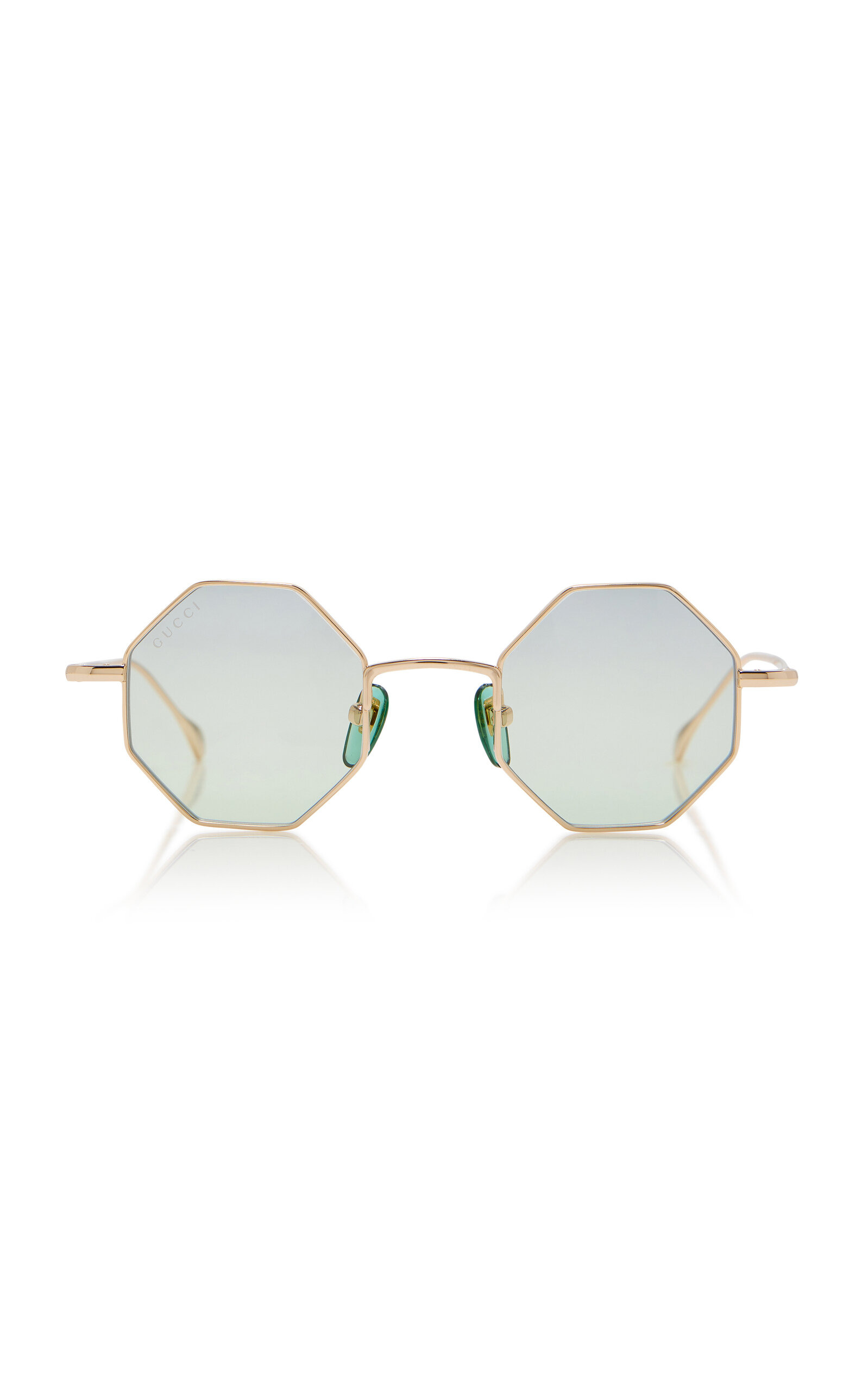 Drawing inspiration from archival elements of the House of Gucci, the newest eyewear collection is an eclectic mix of shapes and styles reminiscent of the ‘70s and ‘80s. These sunglasses feature smaller octagonal frames set with gradient lenses. PRODUCT DETAILS - Composition: metal - 100% UVA/UVB protection - Made in Japan