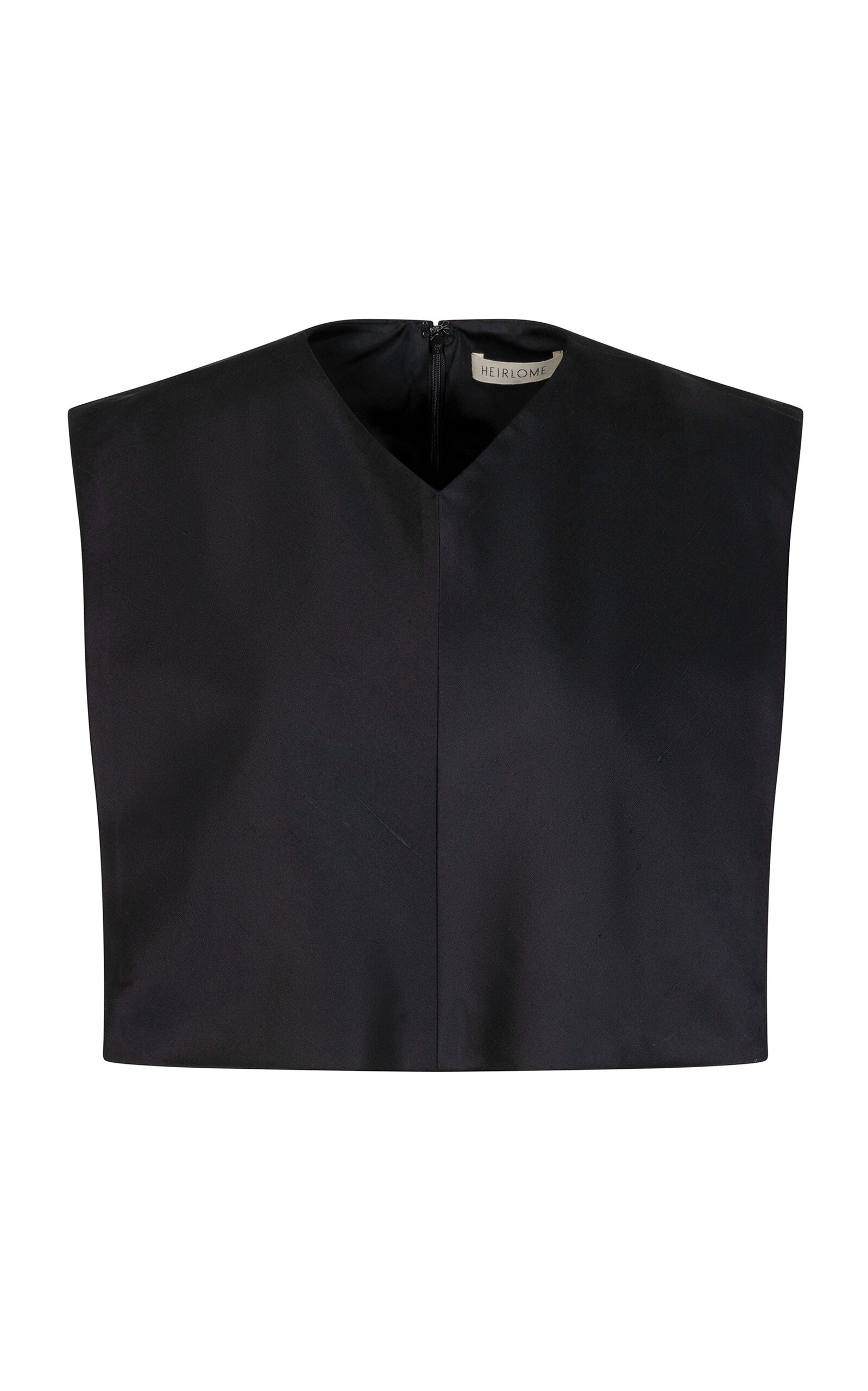 Each Heirlome piece is crafted through the lens of timeless artisanal practices, naturally resulting in impeccable tailoring and exquisite details. Crafted from structured silk, the 'Gemma' crop top is tailored with an intentionally boxy fit that suits high-waisted styles well. PRODUCT DETAILS - Pre-Fall '25 - Concealed zip fastening along back - Composition: 100% Silk - Dry clean only - Imported SIZE & FIT - Designed for a loose fit