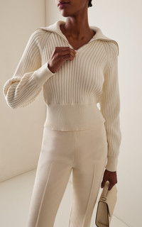 Chester Ribbed-Knit Cotton-Blend Sweater ivory