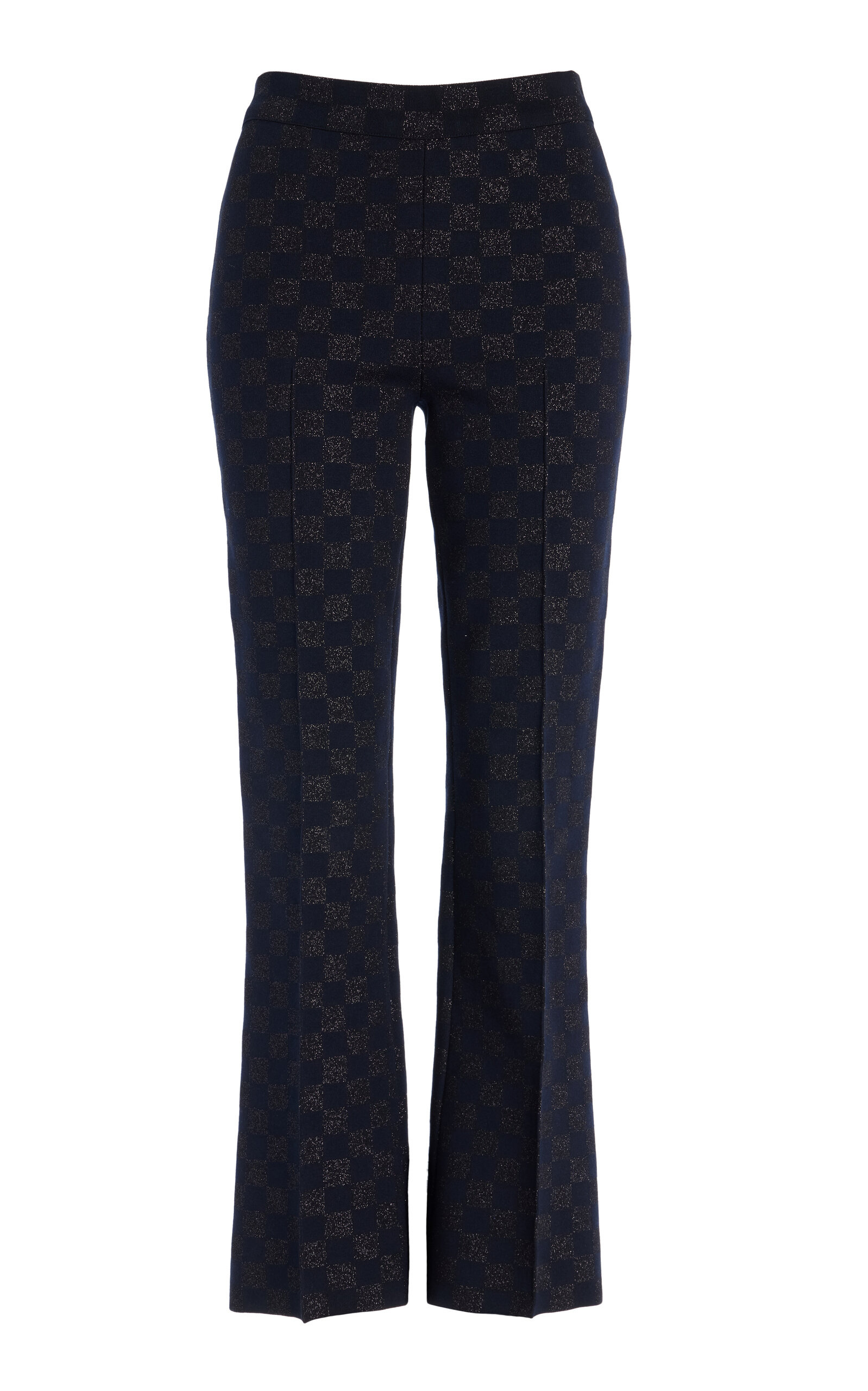 Exclusive Kick Checked Stretch-Cotton Knit Cropped Flared Pants navy