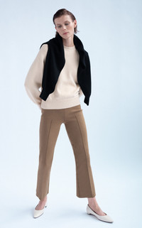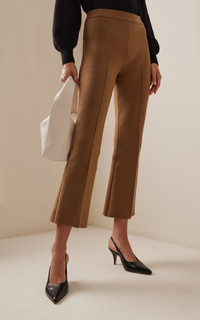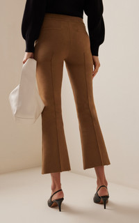 The hyper-considered essentials by Alissa Zachary are tailored from her special signature fabric: a French lycra and soft Italian cotton-blend knit that flatters with a clean finish—and can stand up to the busiest of days. These pull-on 'Kick' pants have slim pin-tucked legs that flare out from the knee to a cropped hem. Pair yours with a pullover from the label. PRODUCT DETAILS - Resort '24 - Pull on - Composition: 68% Cotton, 32% Lycra - Designer color: Toffee - Dry clean - Made in the USA SIZE & FIT - Designed for a slim fit