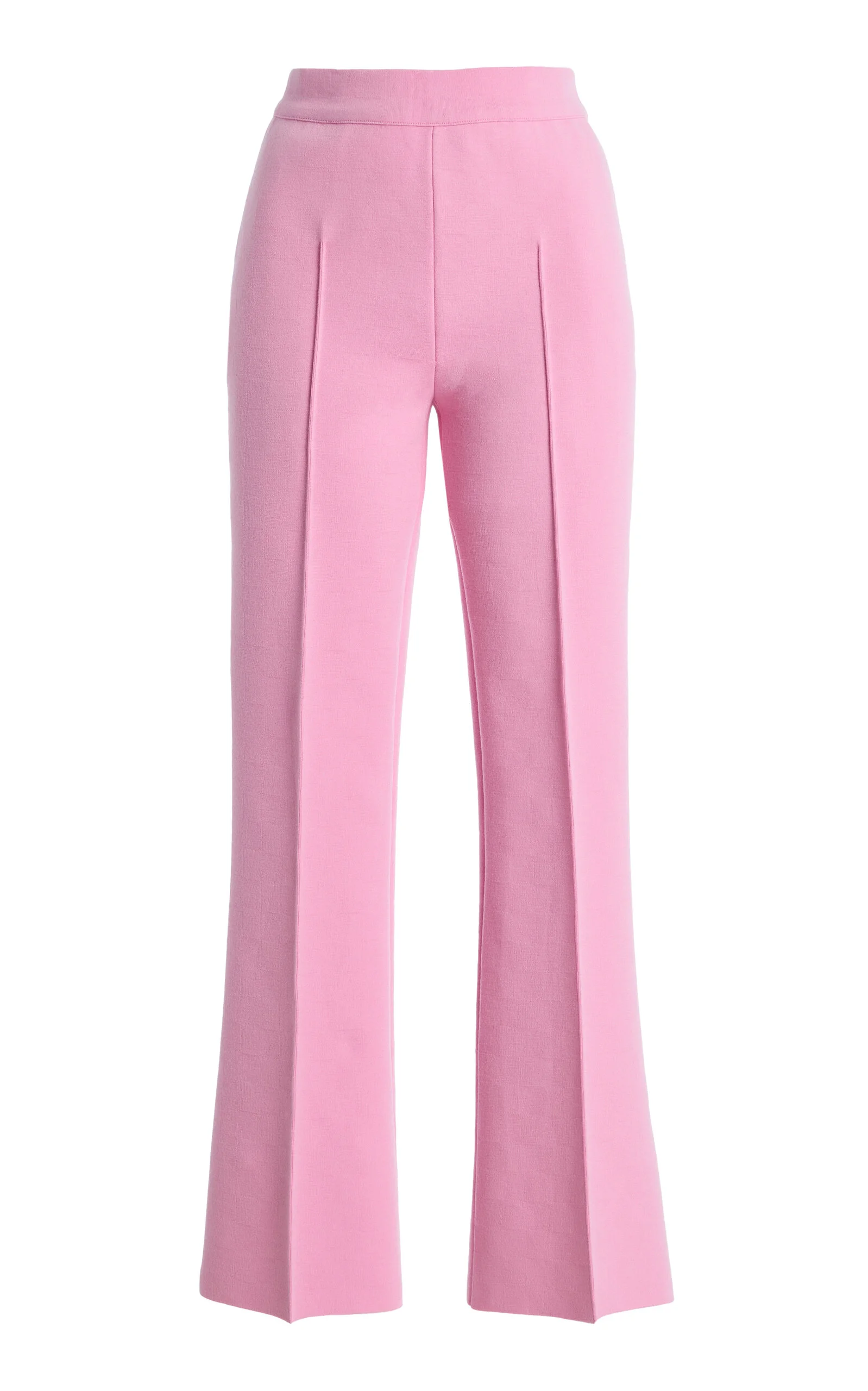 Each season, Alissa Zachary manages to perfect her already-perfect wardrobe foundations—fine-tuning every detail to ensure they can withstand the busiest of days. An update to the signature 'Kick Pant' in stretch merino. Fitted pull-on pant with a mid-rise, cropped flared leg, and pintuck seams at front and back. Finished with faux back pockets. Knit in Italy from a fine merino wool blend for a structured fit with comfortable stretch. PRODUCT DETAILS - Resort '26 - Pull on - Composition: 68% merino wool, 32% polyamide, 4% elastane - Designer color: Bubble Gum - Dry clean - Made in Italy