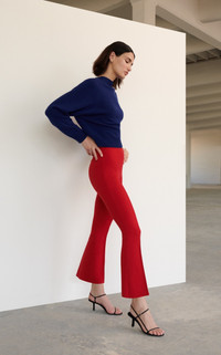 The hyper-considered essentials by Alissa Zachary are tailored from her special signature fabric: a French lycra and soft Italian cotton-blend knit that flatters with a clean finish—and can stand up to the busiest of days. These pull-on 'Kick' pants have slim pin-tucked legs that flare out from the knee to a cropped hem. PRODUCT DETAILS - Pull on - Fabric has a slight checker pattern - Pull on - Composition: 68% cotton, 32% lycra - Machine wash - Made in Italy SIZE & FIT - Our model is wearing a size Small - Model is 5'10" with a 30" bust, 24" waist, and 34" hip - Fits true to size, our fit specialist recommends taking your normal size - Designed for a slim fit