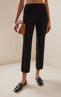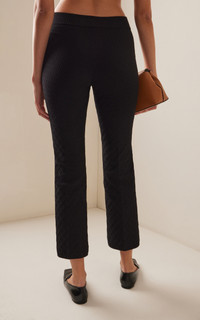 Each season, Alissa Zachary manages to perfect her already-perfect wardrobe foundations—fine-tuning every detail to ensure they can withstand the busiest of days. The 'Kickit' pants feature a high-rise, flared leg silhouette rendered in the label's signature diamond-jacquard weave and a fastening-free construction. PRODUCT DETAILS - Spring/Summer '24 - Pull on - Composition: 71% Cotton, 25% Polyamide, 4% Elastane - Machine wash - Made in Italy SIZE & FIT - Our model is wearing a size Small - Model is 5'10" with a 31" bust, 23.5" waist, and 33.5" hip - Designed for a slim fit - Size Small: Waist 12", Inseam 28", Leg Opening 9"