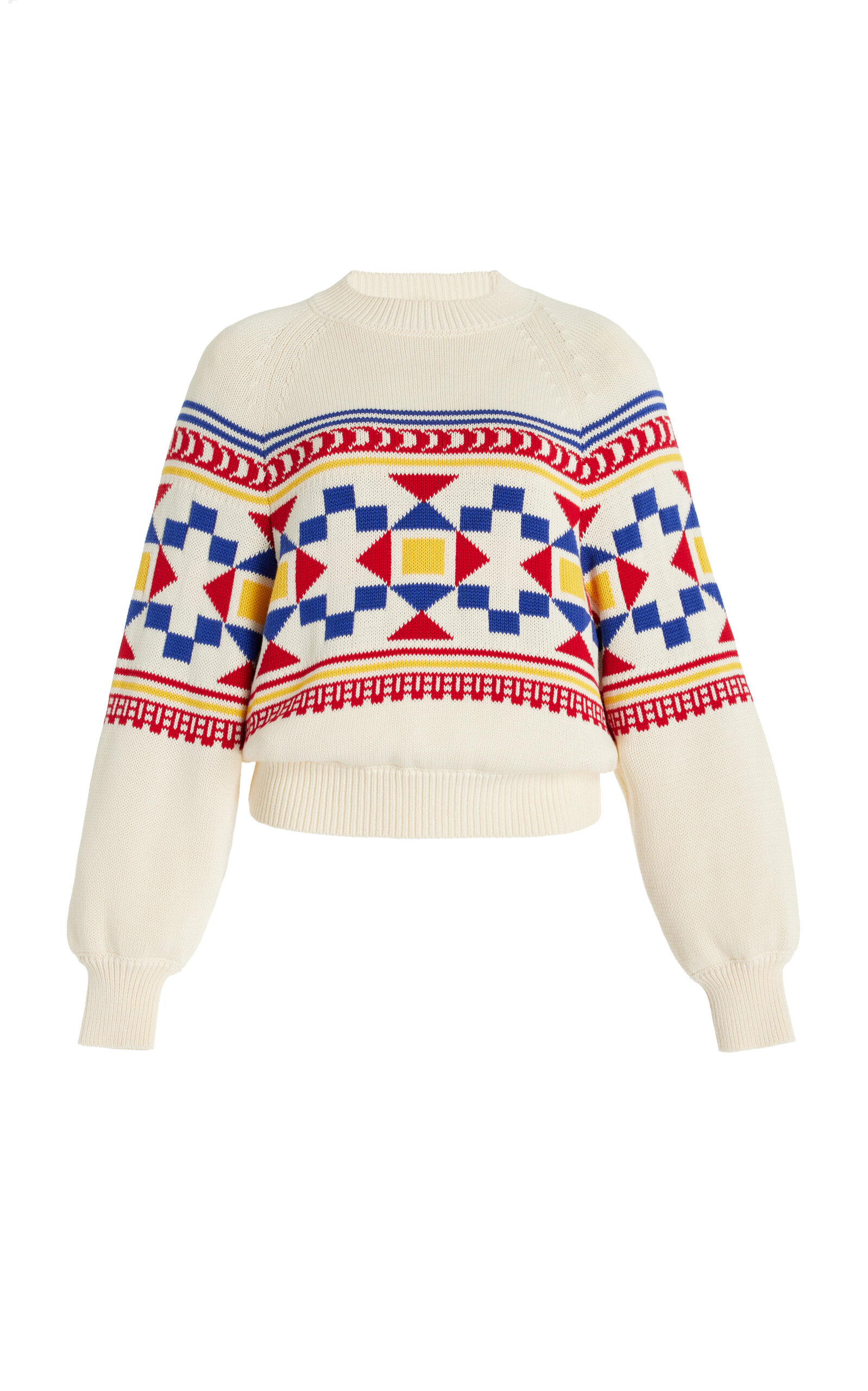 The hyper-considered essentials by Alissa Zachary are tailored from her special signature fabric: a French lycra and soft Italian cotton-blend knit that flatters with a clean finish—and can stand up to the busiest of days. The 'Lara' is a knitted, pullover sweater, made from Italian cotton. It has a generous fit through body and raglan sleeves. The rib trim at neck and cuff are knit with lycra for secure fit. Pairs well with the signature Kick Pant. PRODUCT DETAILS - Resort '25 - Slip on - Composition: 98% Cotton, 2% Lycra - Designer color: Ecru - Dry clean only - Made in the USA SIZE & FIT - Our model is wearing a size Small - Model is 5'10" with a 31" bust, 23.5" waist, and 33.5" hip - Designed for a regular fit