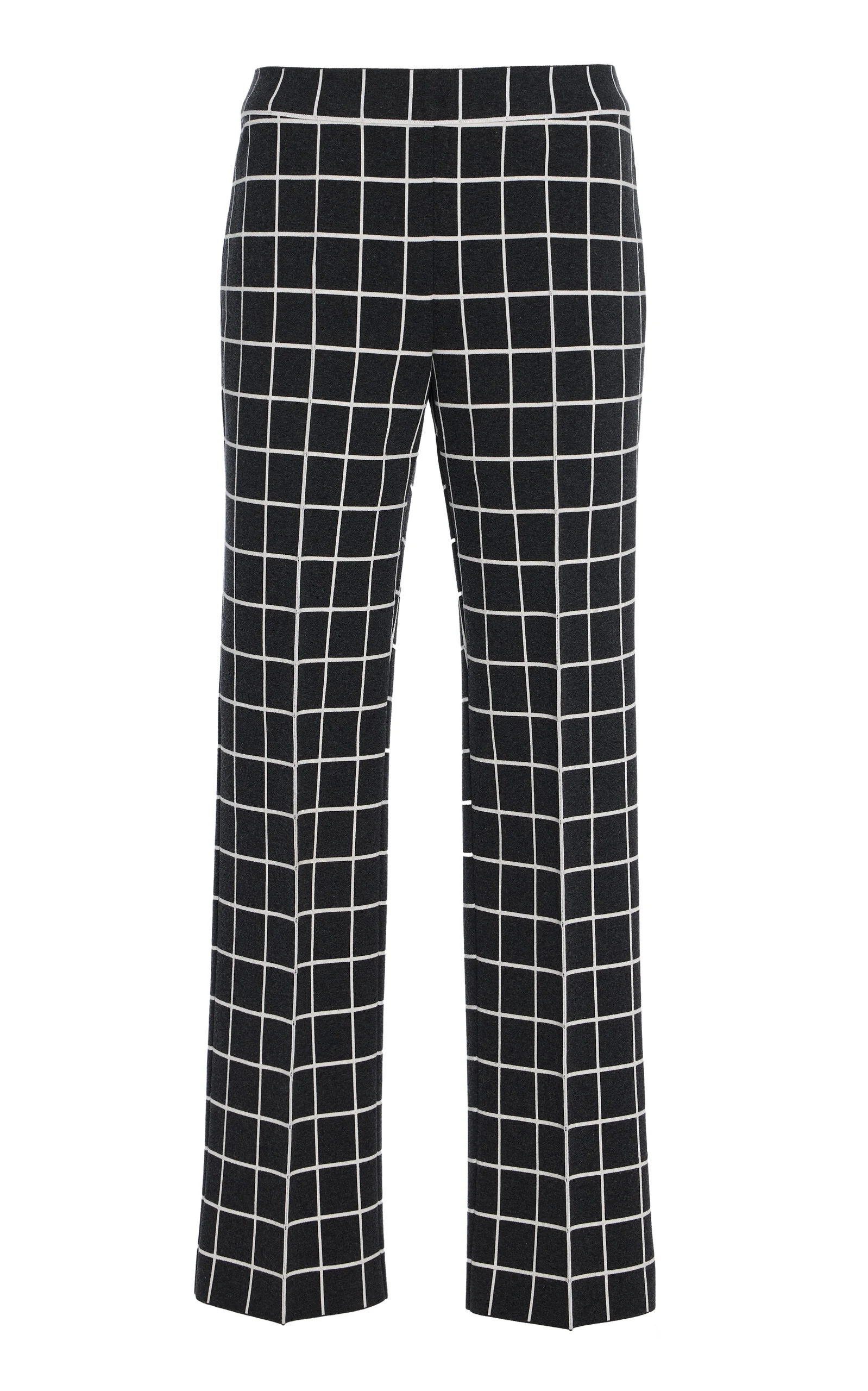 Louis Windowpane Cotton-Blend Knit Cropped Pants dark grey