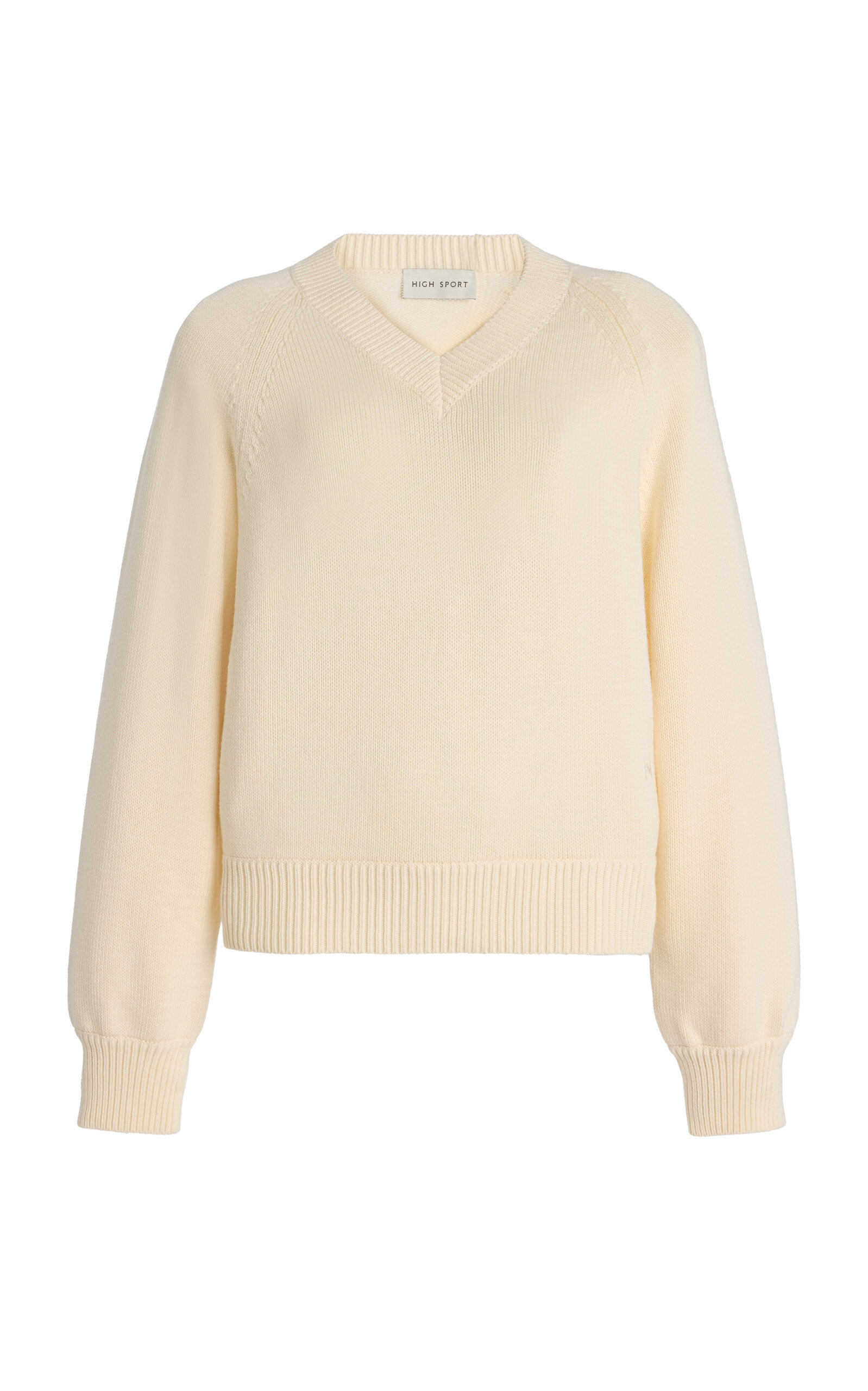 The hyper-considered essentials by Alissa Zachary are tailored from her special signature fabric: a French lycra and soft Italian cotton knit that flatters with a clean finish—and can stand up to the busiest of days. The 'Veronica' sweater is a classic V-neck style with comfortable raglan sleeves and ribbed edges. PRODUCT DETAILS - Spring '25 - Slip on - Composition: 99% cotton, 1% lycra - Dry clean - Made in Italy SIZE & FIT - Designed for a slim fit