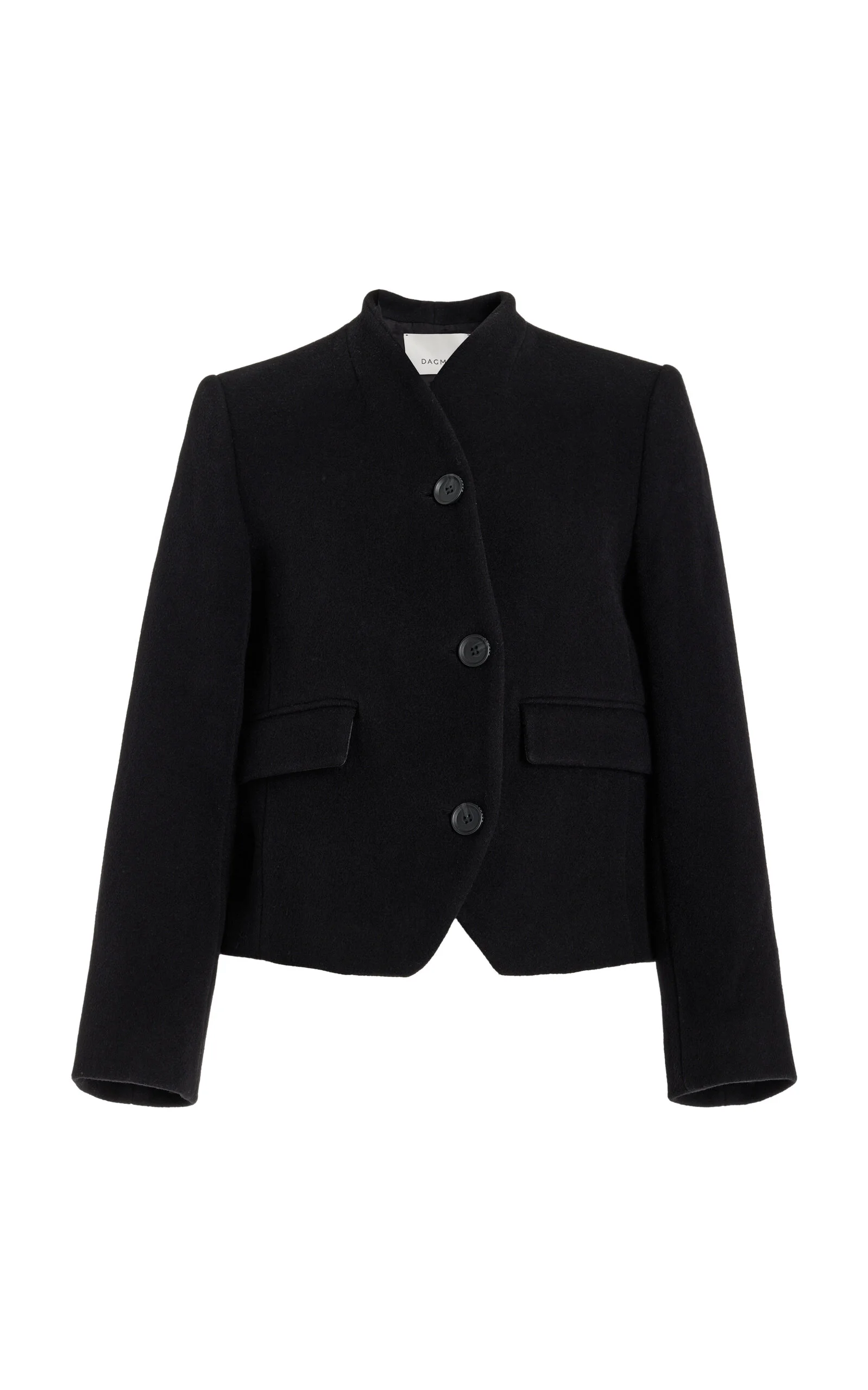 Founded in 2005 by three sisters as a way to honor their late grandmother Dagmar, this Stockholm-based label creates responsible fashion informed by its Scandinavian roots. Its collections are produced by carefully selected manufacturers using long-lasting high-quality materials with the least environmental footprint possible. Crafted from recycled wool and poly fibers, this tailored jacket features a curved button placket and short hem. PRODUCT DETAILS - Fall/Winter '24 - Button fastenings through front - Composition: 65% Recycled Wool, 35% Recycled Polyamide - Dry clean only - Imported SIZE & FIT - Designed for a tailored fit