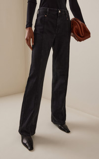 Founded in 2005 by three sisters as a way to honor their late grandmother Dagmar, this Stockholm-based label creates responsible fashion informed by its Scandinavian roots. Its collections are produced by carefully selected manufacturers using long-lasting high-quality materials with the least environmental footprint possible. A mid-rise jean in 100% organic cotton with a straight, wide-leg frame and top-stitch detailing to the front. PRODUCT DETAILS - Fall '25 - Zip fly fastening - Composition: 100% organic cotton - Designer color: Washed Black - Dry clean - Made in Italy SIZE & FIT - Our model is wearing a size 26 - Model is 5’10” with a 31.5” bust, 23.5” waist, and 35” hip - Fits true to size, our fit specialist recommends taking your normal size - Designed for an oversized fit