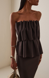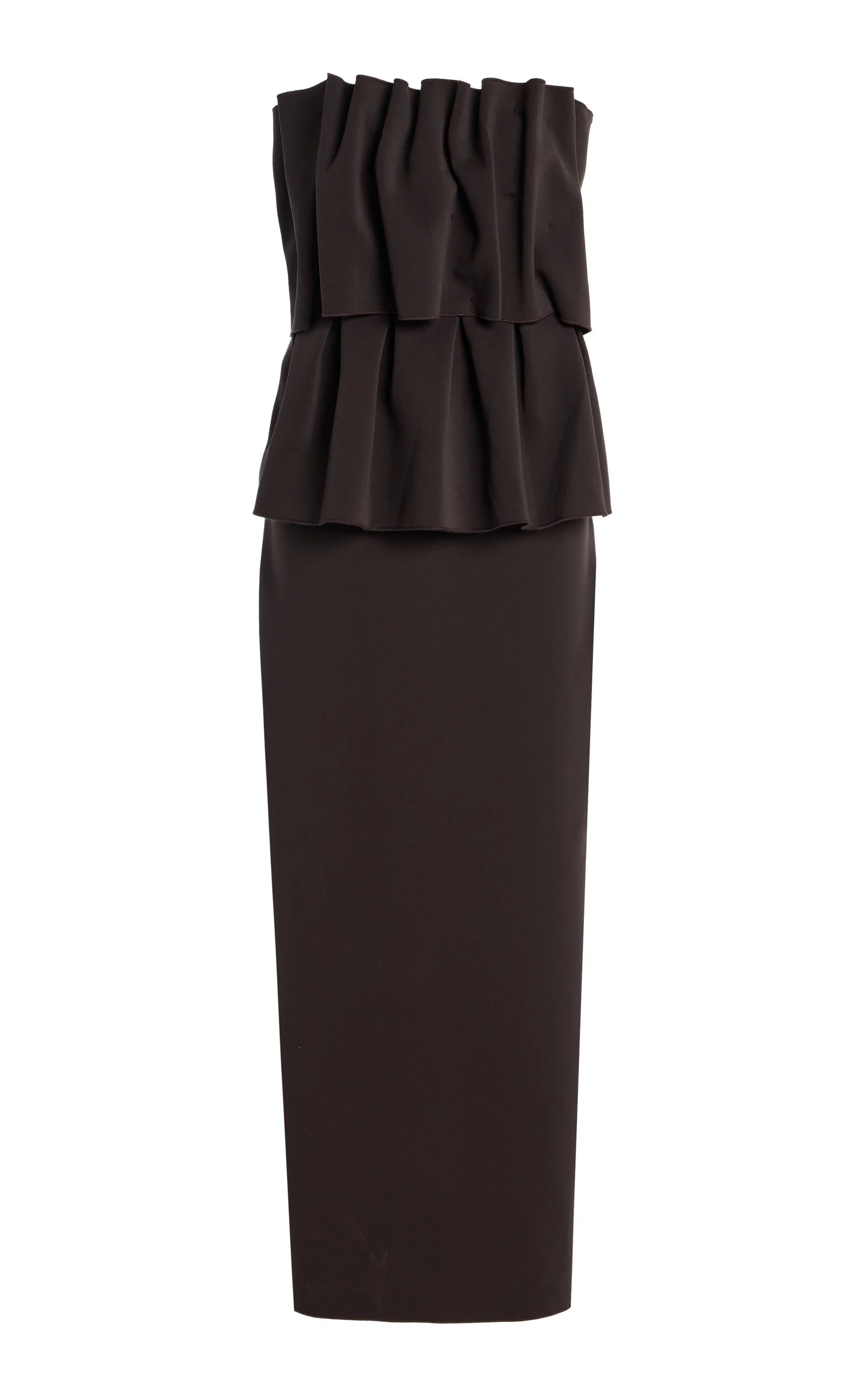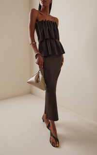 Founded in 2005 by three sisters as a way to honor their late grandmother Dagmar, this Stockholm-based label creates responsible fashion informed by its Scandinavian roots. Its collections are produced by carefully selected manufacturers using long-lasting high-quality materials with the least environmental footprint possible. Sleeveless Sculpted dress in a sculptural polyamide blend, presented with a slim skirt, artful draping, and a long, lean silhouette. PRODUCT DETAILS - Fall '25 - Zip fastening - Composition: 63% polyamide, 22% recycled polyamide, 15% elastane - Designer color: Chocolate - Dry clean - Made in Portugal