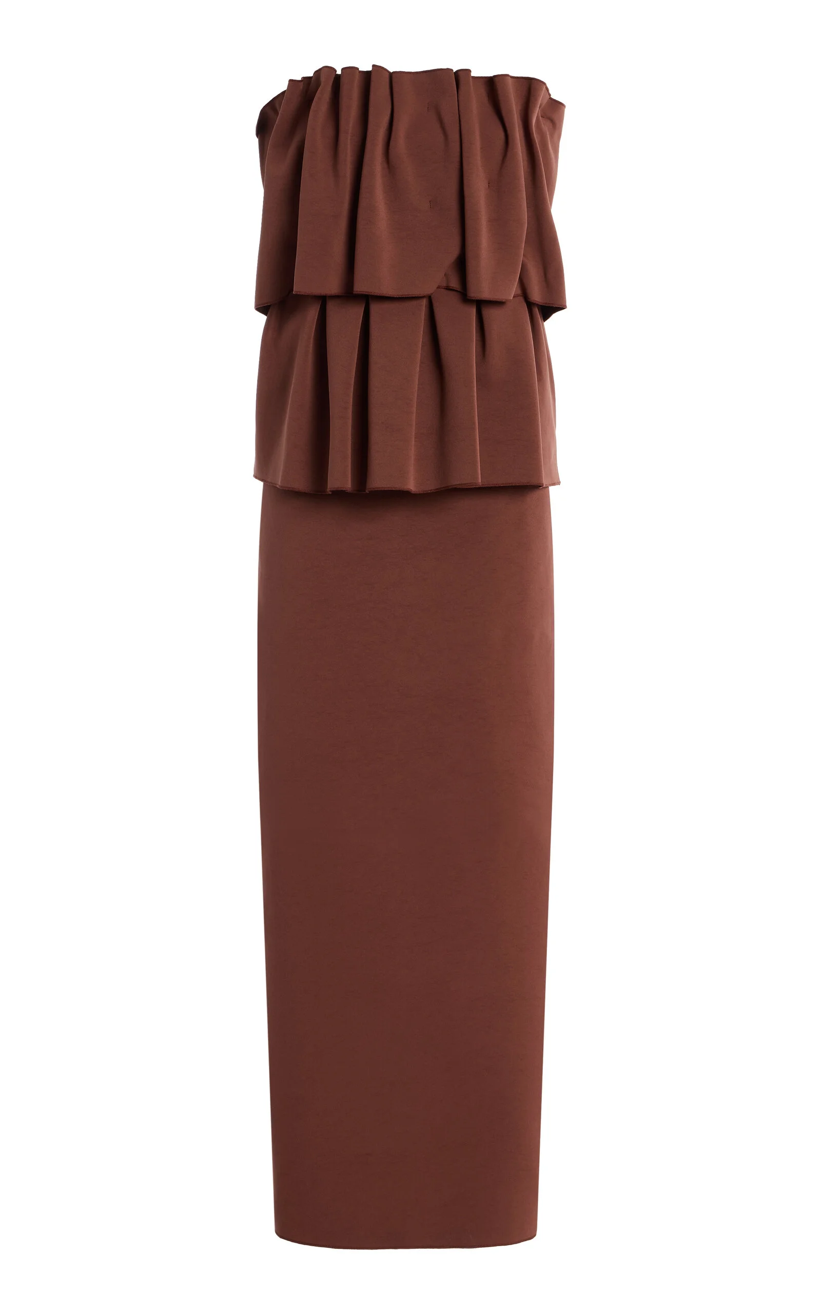 Founded in 2005 by three sisters as a way to honor their late grandmother Dagmar, this Stockholm-based label creates responsible fashion informed by its Scandinavian roots. Its collections are produced by carefully selected manufacturers using long-lasting high-quality materials with the least environmental footprint possible. Sleeveless Sculpted midi dress in a sculptural polyamide blend, presented with a slim skirt, artful draping, and a long, lean silhouette. PRODUCT DETAILS - Resort '26 - Zip fastening - Composition: 63% polyamide, 22% recycled polyamide, 15% elastane - Designer color: Mahogny-Red - Dry clean - Made in Portugal