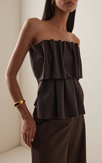 Founded in 2005 by three sisters as a way to honor their late grandmother Dagmar, this Stockholm-based label creates responsible fashion informed by its Scandinavian roots. Its collections are produced by carefully selected manufacturers using long-lasting high-quality materials with the least environmental footprint possible. Sleeveless top in a sculptural polyamide blend, accentuated by artful draping and a layered look. PRODUCT DETAILS - Fall '25 - Slip on - Composition: 63% polyamide, 22% recycled polyamide, 15% elastane - Designer color: Chocolate - Dry clean - Made in Portugal