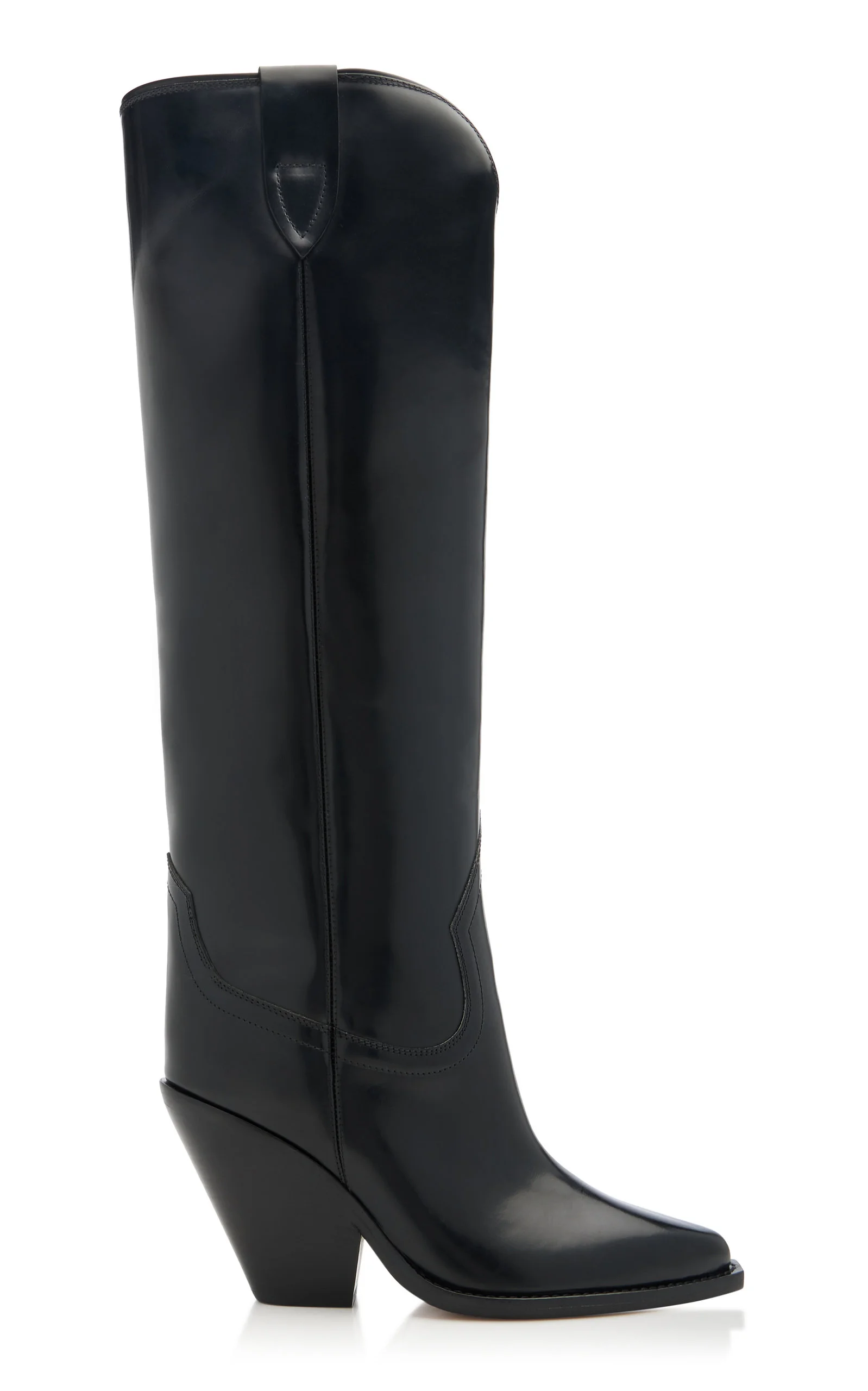 Isabel Marant's Western-inspired boots are a cult style 'It' girls turn to each season. Made from structured calfskin leather, the 'Lomero' style has an on-trend knee-length silhouette made with the designer's signature Cuban heel. Wear them with her covetable denim. PRODUCT DETAILS - Heel height measures approximately 90mm/ 3.5 inches - Pull on - Composition: calfskin leather - Made in Italy