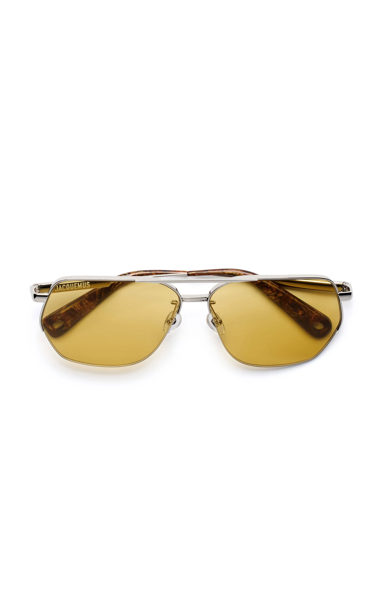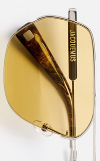 A Moda favorite and one of the most exciting designers working today, Simon Porte Jacquemus is one to watch. With influences that range from the art world to his own childhood by the seaside, the French creative builds an ultra-covetable collection each season that's fresh, never boring and always sexy. The 'Aviador' sunglasses have flat frames made from lightweight metal set with yellow lenses that offer UV 400 protection and signature circle and square rivets. PRODUCT DETAILS - Composition: stainless steel - 100% UV protection - Made in Italy