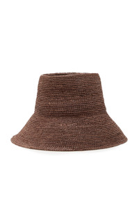 Each Janessa Leone accessory is expertly hand-crafted in Los Angeles with responsibly-sourced materials and ethical practice—prioritizing people and planet above all. A raffia straw bucket hat made for summer. This short-brimmed crochet bucket hat was intricately crocheted to create a flexible and structured design. This effortless bucket hat can easily be worn year-round and is meant for traveling with you wherever you go whether in a suitcase, a purse or a beach bag. PRODUCT DETAILS - Slip on - Composition: raffia straw - Designer color: Dark Earth - Made in the USA SIZE & FIT - Runs large. If between sizes, we suggest sizing down. - Brim 3.5" - Crown 4"