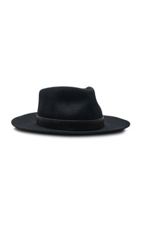 Each Janessa Leone accessory is expertly hand-crafted in Los Angeles with responsibly sourced materials and ethical practice—prioritizing people and planet above all. A timeless classic, Ross is crafted from 100% wool, featuring a tonal suede band and a signature gold logo screw closure. This bestselling fedora offers effortless packability, making it a versatile essential for any wardrobe. Its structured shape and understated design embody both sophistication and functionality. PRODUCT DETAILS - Slip on - Composition: 100% wool, Band: leather - Made in the USA
