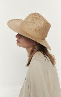 Each Jessica Leone accessory is expertly hand-crafted in Los Angeles with responsibly-sourced materials and ethical practice—prioritizing people and planet above all. This classic fedora style is made with woven, packable straw into a structured modern shape. It's detailed with a tonal leather band to create a minimal and timeless look. PRODUCT DETAILS - This item is not eligible for expedited shipping - Due to the handwoven pattern and the natural dye, each hat is considered one of a kind - Slip on - Composition: Endura straw, leather band - Designer color: Sand - Made in the USA