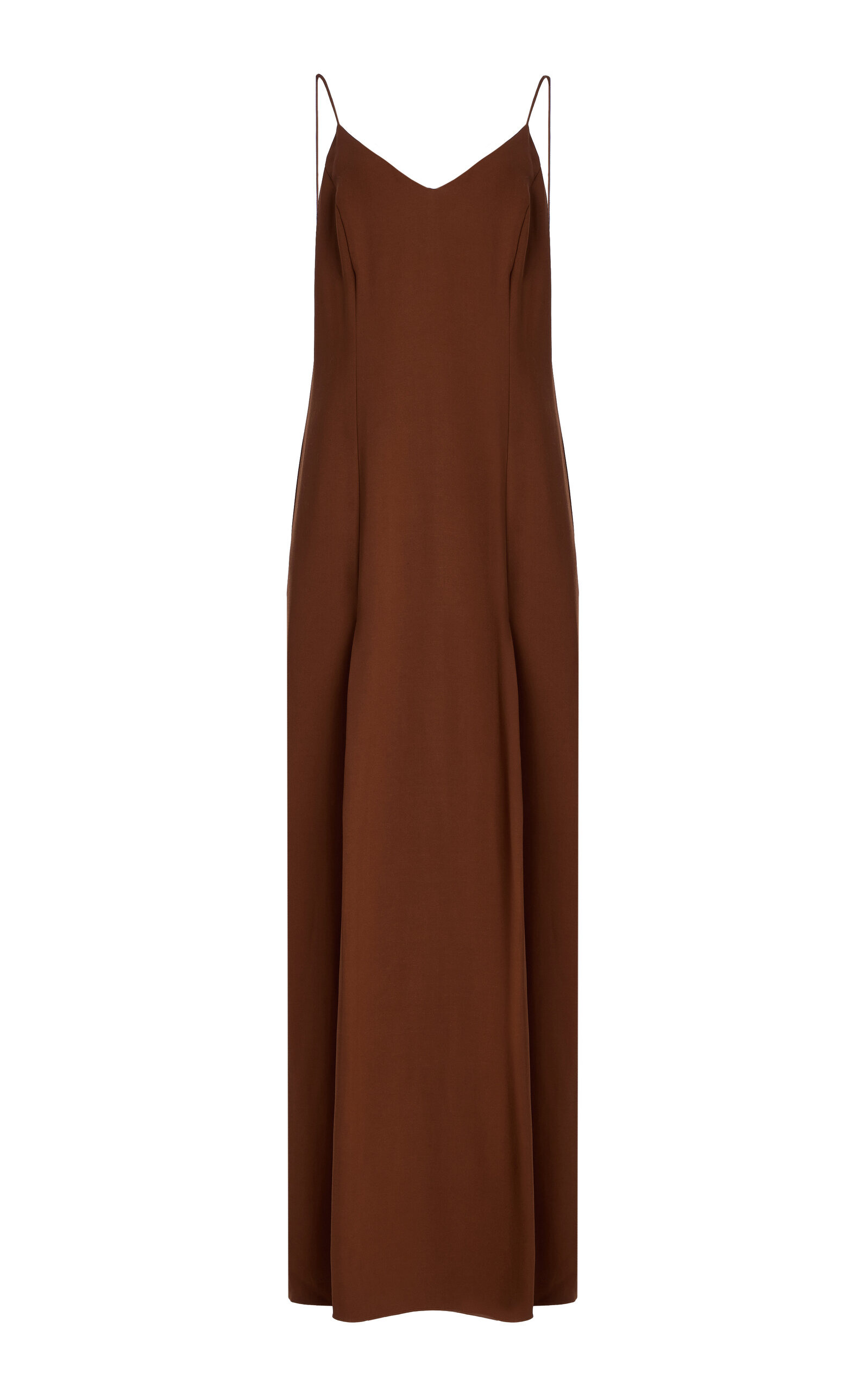 With focus on sumptuous textiles and neutral hues, Jenni Kayne excels in crafting covetable wardrobe staples to cherish season after season. The Florence Slip Dress is all fluid movement and feminine structure. Crafted from crepe fabric with beautiful drape and weight, it features a fitted bodice, crisp box pleats, full lining, and discreet zip closures. Style it with a strappy sandal or heel and a sleek clutch for effortless polish. PRODUCT DETAILS - Fall '25 - Zip fastening - Composition: 96% viscose, 4% elastane - Designer color: Rust - Dry clean - Imported