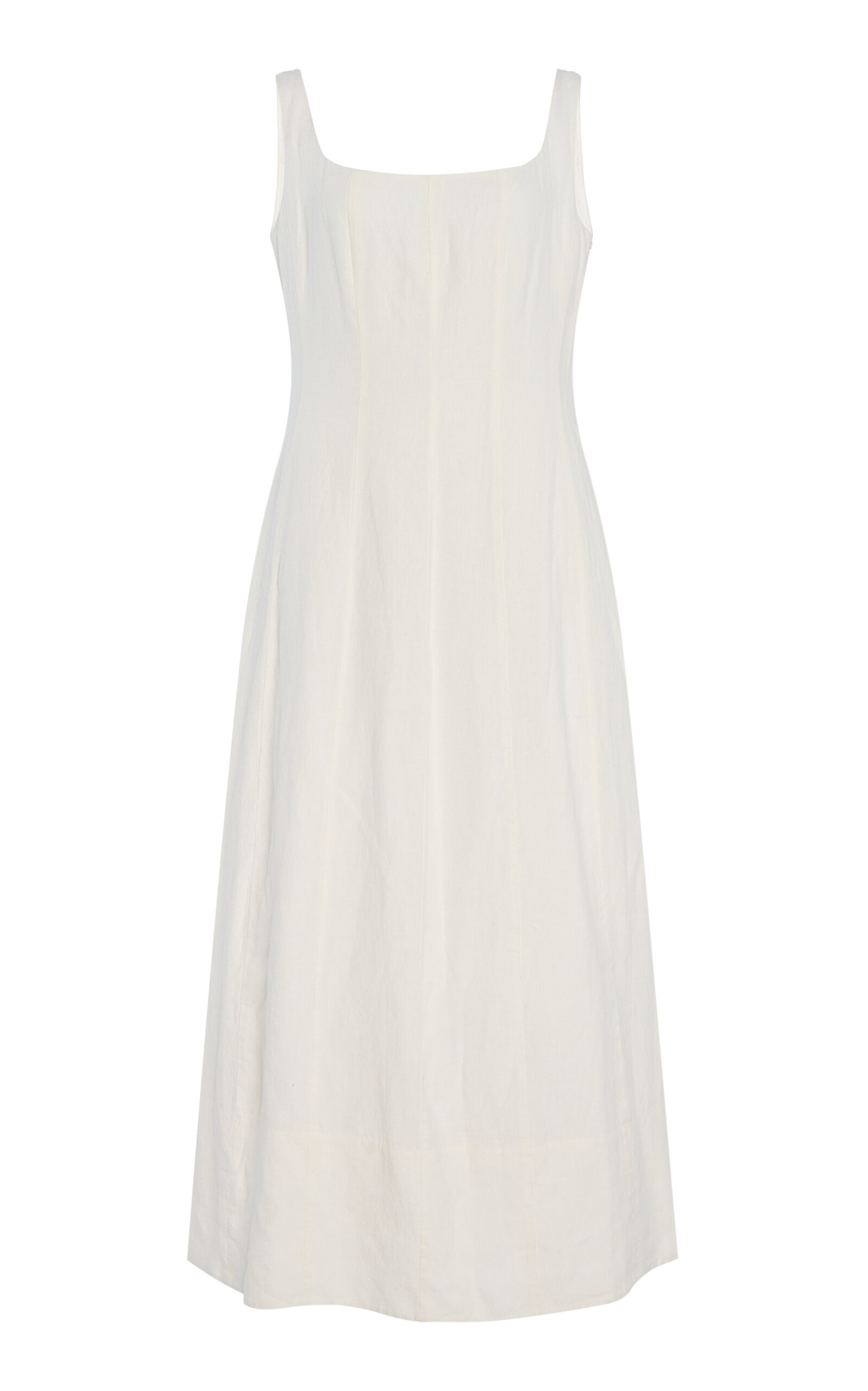 With focus on sumptuous textiles and neutral hues, Jenni Kayne excels in crafting covetable wardrobe staples to cherish season after season. Crafted from crisp, breathable linen, the 'Kinney' midi is an understated square neck, A-line design with timeless appeal. PRODUCT DETAILS - Pre-Fall '25 - Concealed zip fastening along back - Composition: 100% Linen - Dry clean or hand wash - Imported SIZE & FIT - Designed for a slim fit