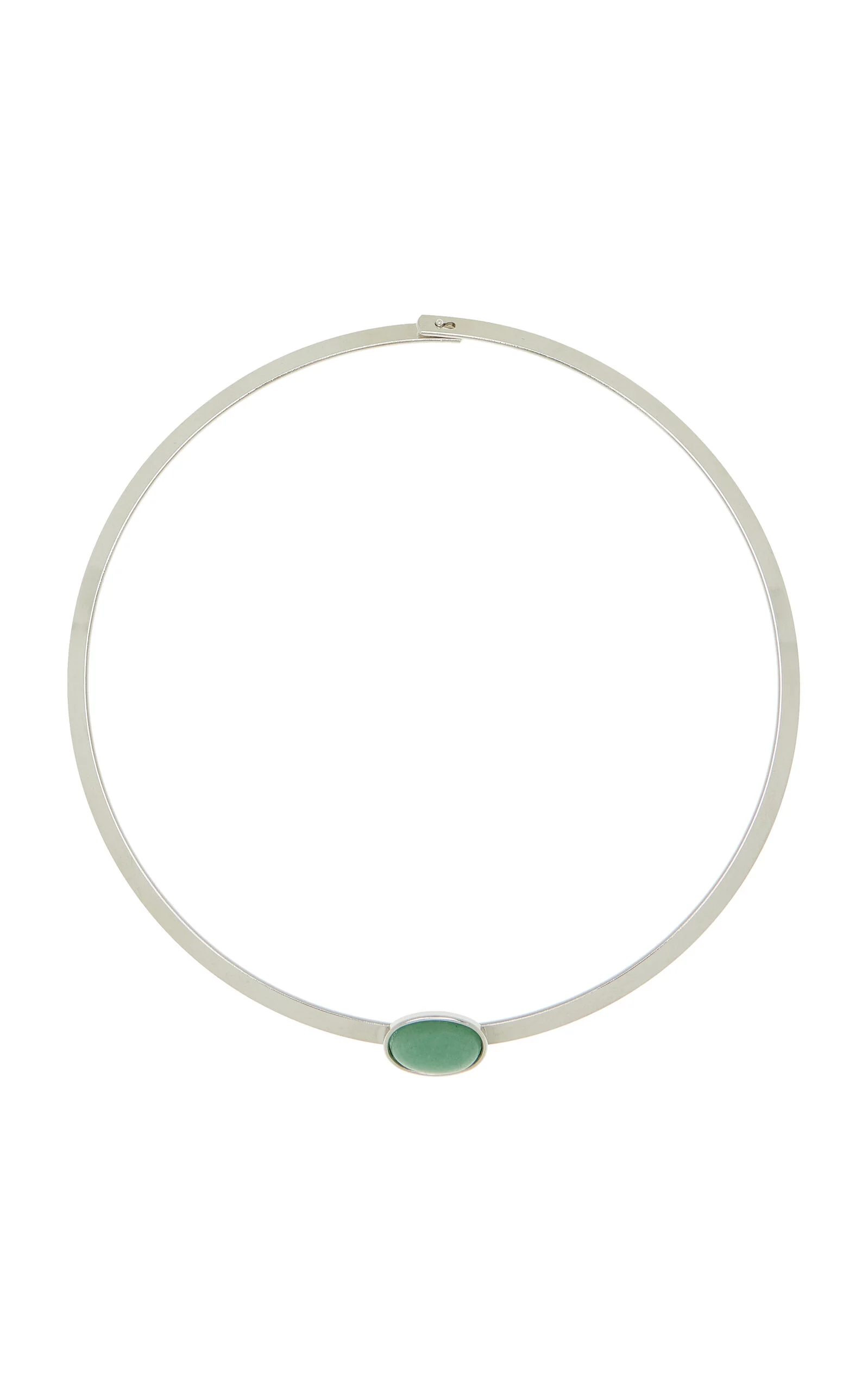 Jennifer Behr launched her eponymous label in 2005 with a distinctive range of luxury hair accessories and jewelry designs. Each piece is carefully crafted and made to carry on the rich inspiration, tradition and powerful histories of bygone eras. Sourced from France, the 18-karat gold-plated collar is Jennifer's all-time favorite, as it sits on the neck, grazing the collarbone. The sleek simplicity of the collar and bezel setting perfectly highlight the beauty and idiosyncrasies of each gem. PRODUCT DETAILS - Clasp fastening - Composition: rhodium-plated brass, aventurine - Made in the USA