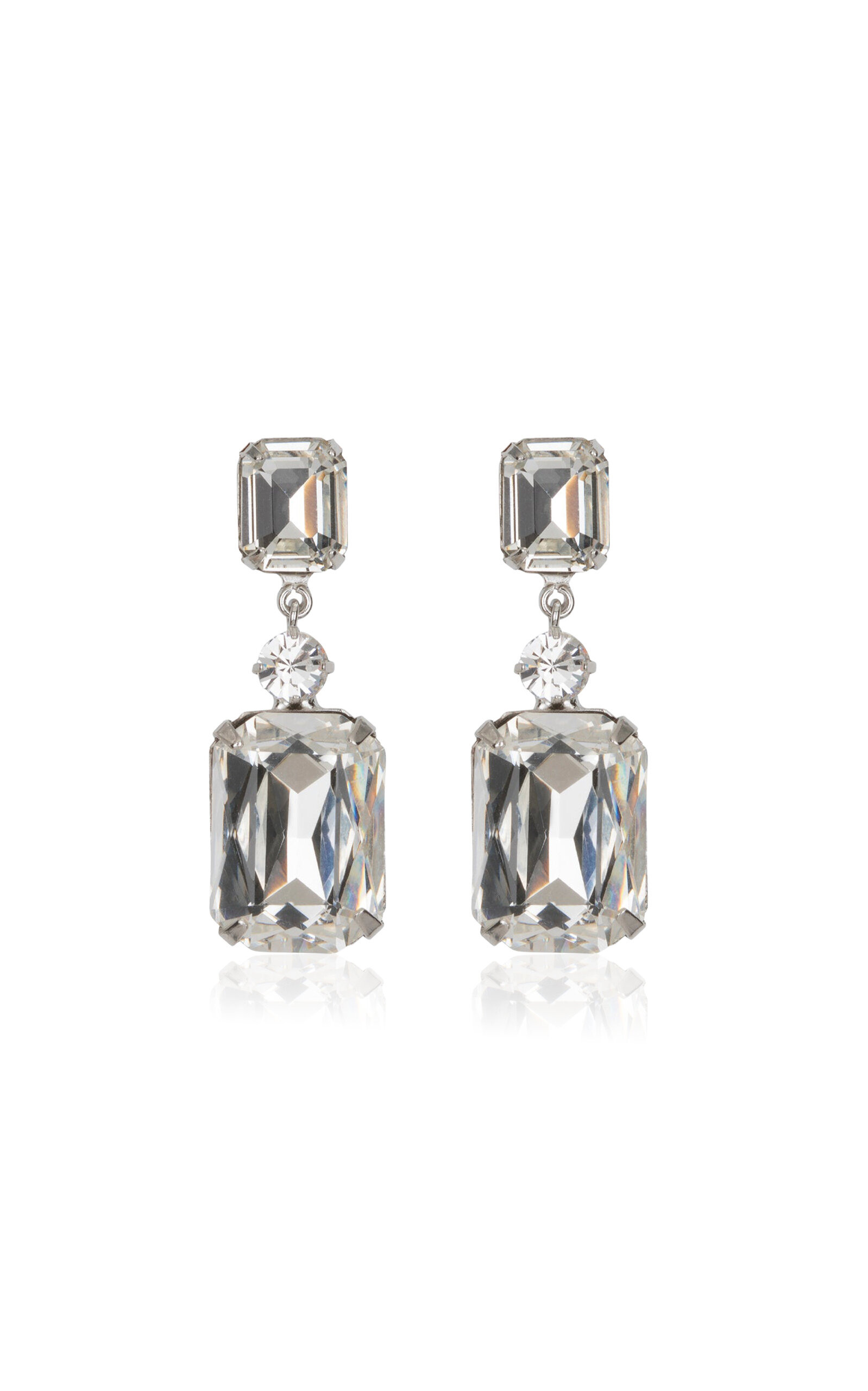 Jennifer Behr launched her eponymous label in 2005 with a distinctive range of luxury hair accessories and jewelry designs. Each piece is carefully crafted and made to carry on the rich inspiration, tradition and powerful histories of bygone eras. Your Bejeweled Era begins with the Justine Earrings. A pair of stately emerald-cut crystals in complementary hues are separated by a single delicate round stone. These superior drops will remain in constant rotation in your wardrobe for years to come. PRODUCT DETAILS - Post fastening - Composition: 18K gold plated brass, crystal - Made in the USA