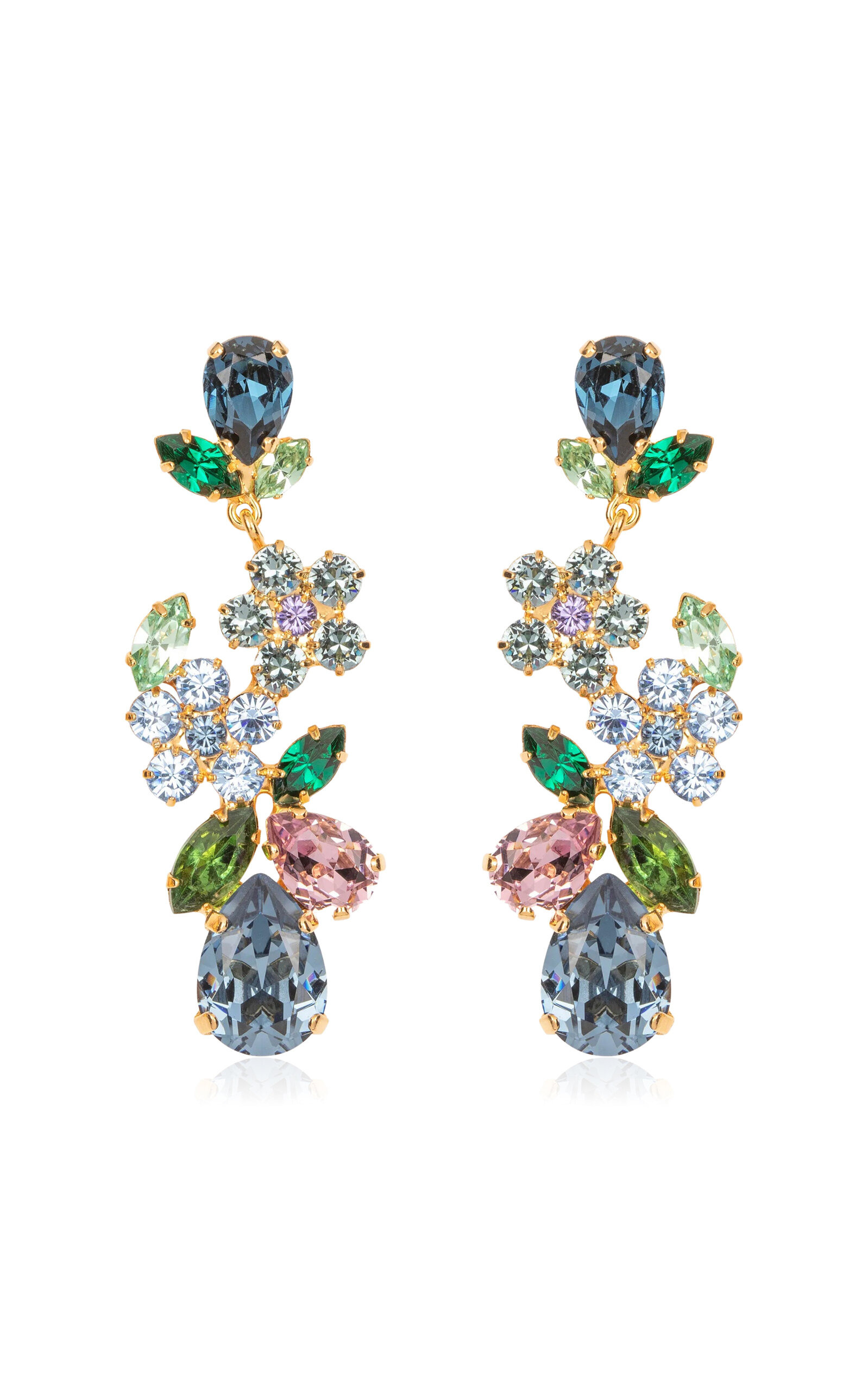 Jennifer Behr launched her eponymous label in 2005 with a distinctive range of luxury hair accessories and jewelry designs. Each piece is carefully crafted and made to carry on the rich inspiration, tradition and powerful histories of bygone eras. For the floral lover, the Martella Earrings are a fresh addition to your collection of our iconic garden styles. A wearable version of the most awe-inducing floral arrangements, fine Austrian crystals in a plethora of colors and cuts are pieced together. PRODUCT DETAILS - Post fastening - Composition: 18K gold plated brass; Austrian crystals - Made in the USA