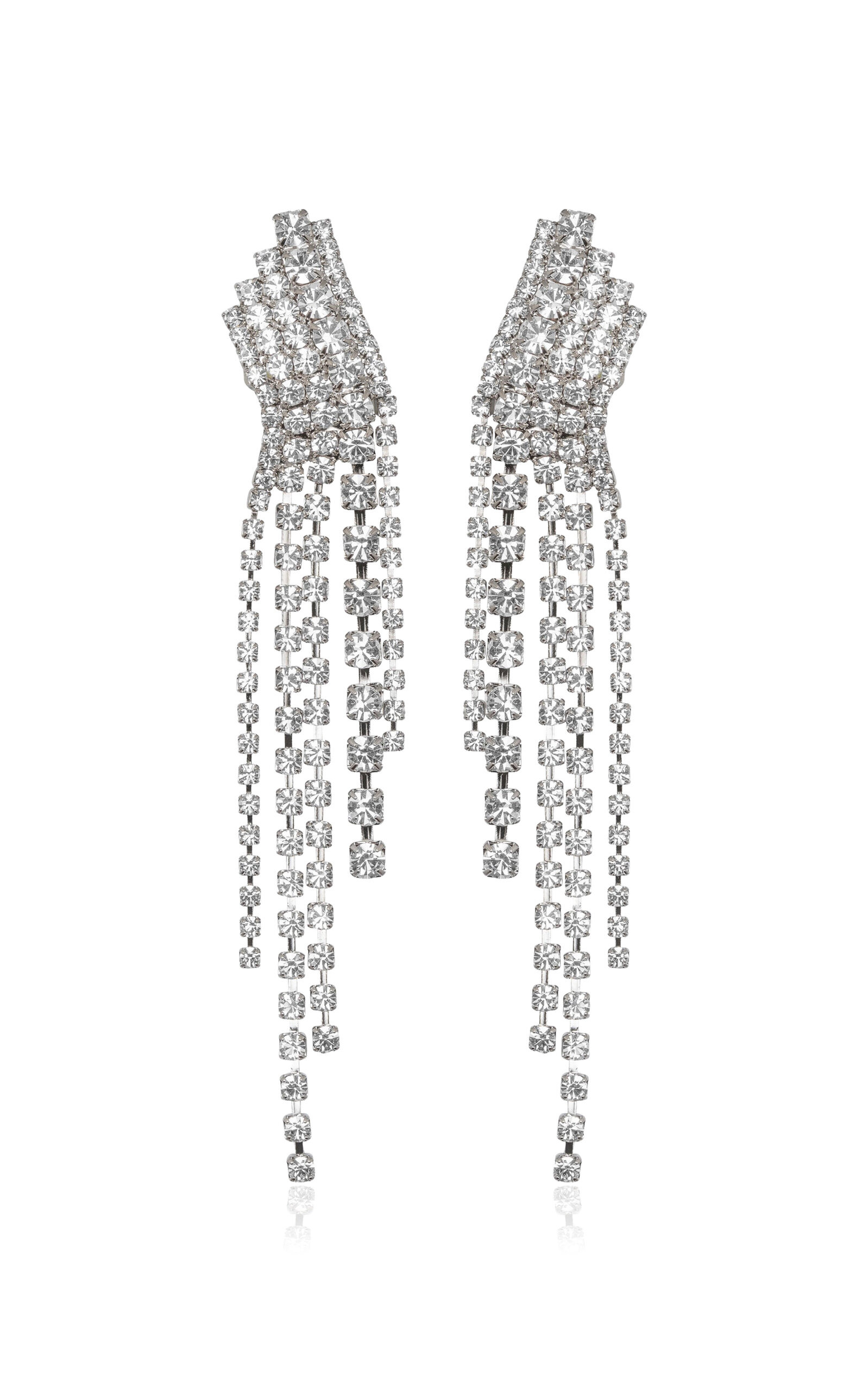 Jennifer Behr launched her eponymous label in 2005 with a distinctive range of luxury hair accessories and jewelry designs. Each piece is carefully crafted and made to carry on the rich inspiration, tradition and powerful histories of bygone eras. A Gatsby-inspired statement, the Zayla Earrings guarantee good times. Made by hand in New York, the crystal chains travel up the ear in a geometric shape, each chain eventually breaking free to give way to strands of free-flowing crystal fringe. The movement magnifies the sparkle, casting beams of light with your every turn. PRODUCT DETAILS - Composition: crystal - Made in the USA