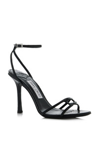 Loved by everyone from mega-celebrities to first ladies and royalty, Jimmy Choo's faultless roster of shoes and accessories have graced countless red carpets and glamorous events. The 'Leo' sandal has a slim and strappy silhouette crafted from gold-metallic leather set atop a slim high heel. PRODUCT DETAILS - Heel measures approximately 100mm / 4" - Buckle-fastening ankle strap - Composition: leather - Made in Italy