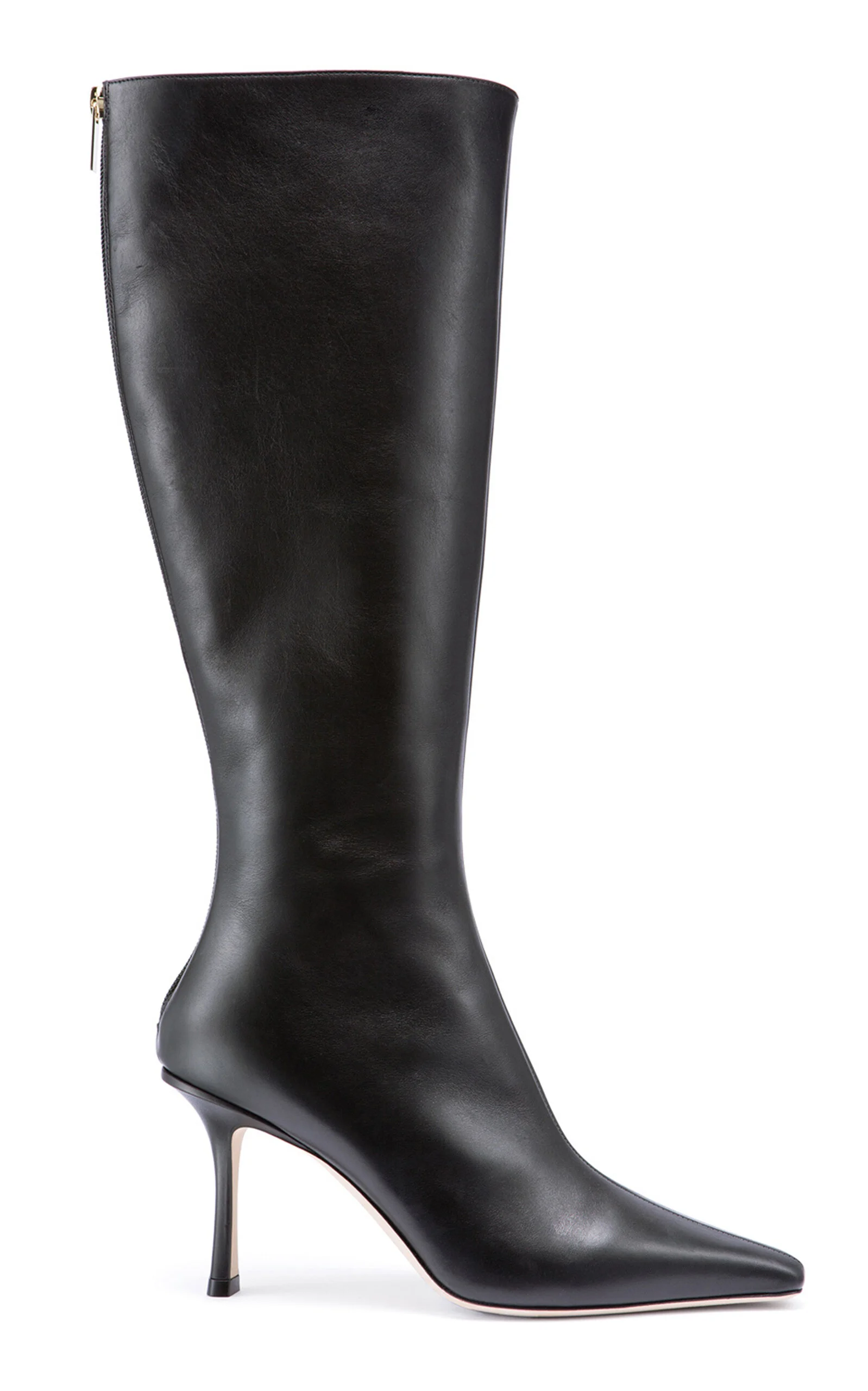 Loved by everyone from mega-celebrities to first ladies and royalty, Jimmy Choo's faultless roster of shoes and accessories have graced countless red carpets and glamorous events. In luxe calf leather, the Agathe boots will be a go-to classic in your wardrobe. This pointed-toe silhouette is set on a sleek 85mm heel and features a zip closure at the back. Perfectly paired with denim or sophisticated looks in your workwear capsule. PRODUCT DETAILS - Heel height measures 85mm/ 3.35" - Zip fastening - Composition: calfskin leather - Made in Italy