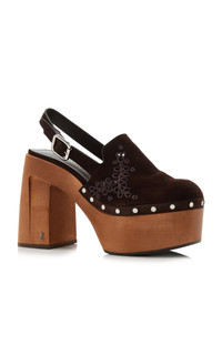 Alida Platform 135 Suede Slingback Clog with Sangallo Embroidery