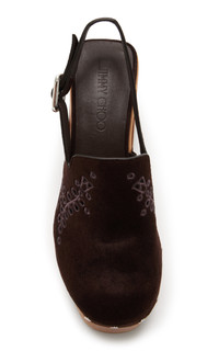 Loved by everyone from mega-celebrities to first ladies and royalty, Jimmy Choo's faultless roster of shoes and accessories have graced countless red carpets and glamorous events. Crafted from embroidered suede, the 'Alida' is set on a platform clog sole, tipped with rubber for easy footing. PRODUCT DETAILS - Heel height measures approximately 135mm/ 5.3" - Buckle fastening - Composition: suede - Designer color: Chocolate - Made in Italy