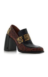 Loved by everyone from mega-celebrities to first ladies and royalty, Jimmy Choo's faultless roster of shoes and accessories have graced countless red carpets and glamorous events. The 'Tylor' is a patchwork composed of three different snake-printed leather panels covering its loafer form. A tall block heel completes this edgy pair. PRODUCT DETAILS - Heel measures approximately 95mm / 4" - Slip on - Composition: snake-printed leather - Imported