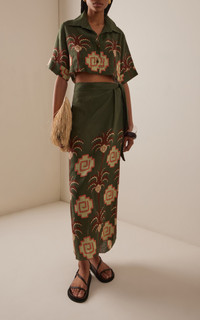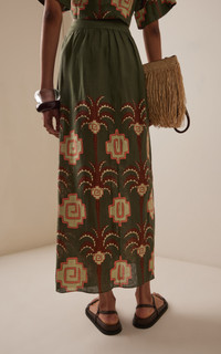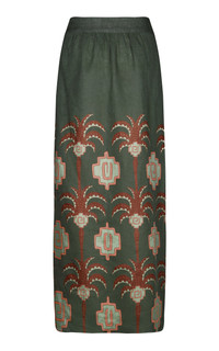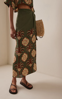 PRODUCT DETAILS - Sarong-style wrap skirt, side tie, maxi hem - Tie fastening - Unlined - Composition: 100% Linen - Color: Green /Chocolate/Pink - Dry clean only - Pre-Fall '25
