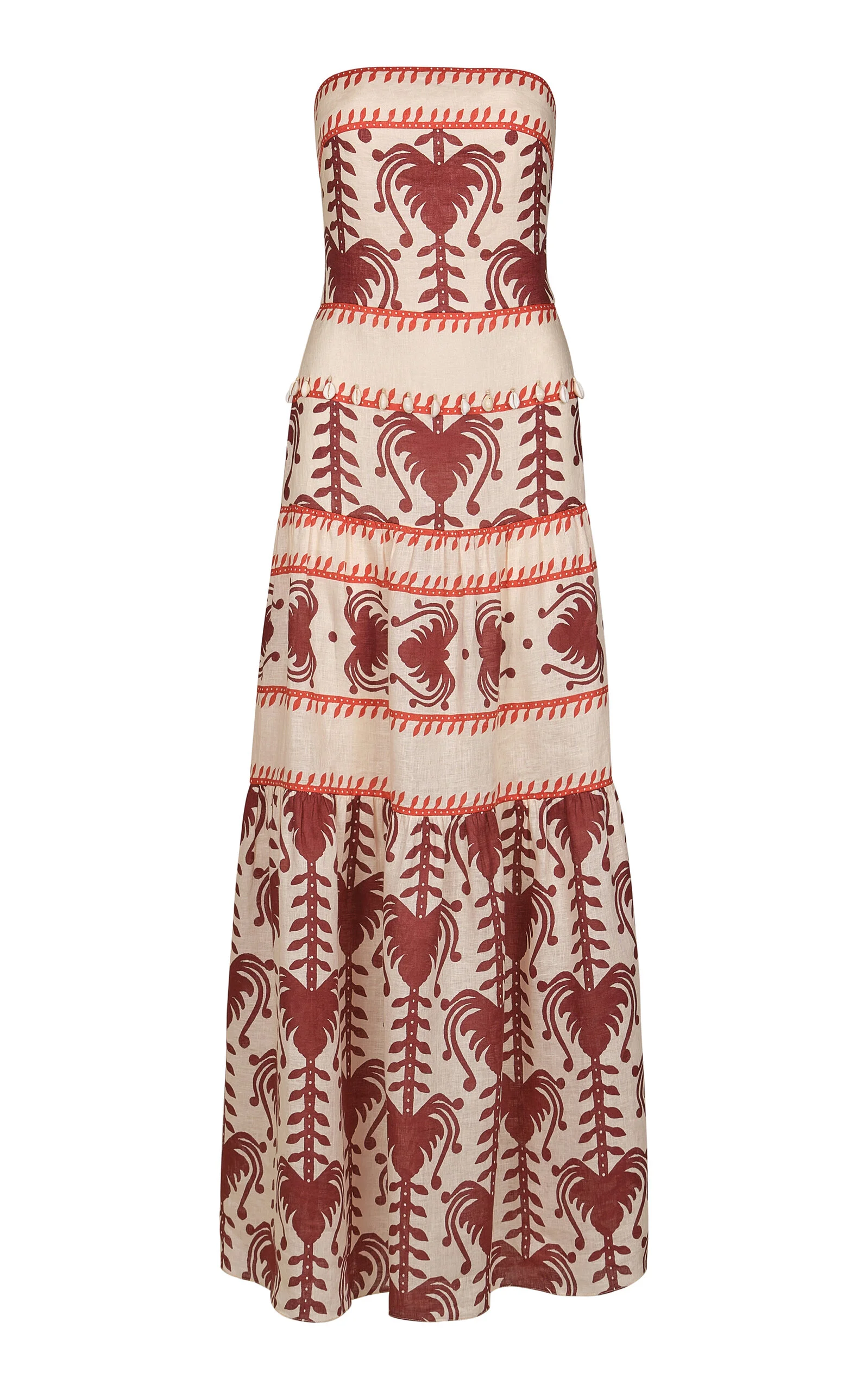 A sense of free-flowing abundance defines the Resort lineup from the Colombian designer, who calls the color palette for this collection “warm, moody, and unforgettable.” The 'Another Chance' linen dress features a shell-lined strapless bodice that falls to a tiered skirt. PRODUCT DETAILS - Resort '26 - Zip fastening - Composition: 100% linen - Designer color: Ecru/ Marsala - Hand wash - Made in Colombia SIZE & FIT - Our model is wearing a size US 2 - Model is 5'10" with a 31" bust, 23.5" waist, and 33.5" hip