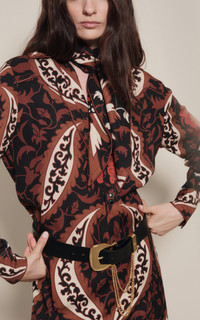 PRODUCT DETAILS - Regular fit, standard collar and long sleeve, geometric printed patterns throughout - Front Button Closure - Unlined - Composition: 68% Recycled Viscose, 32% Viscose - Color: multi - Dry Clean Only - Fall-Winter '25