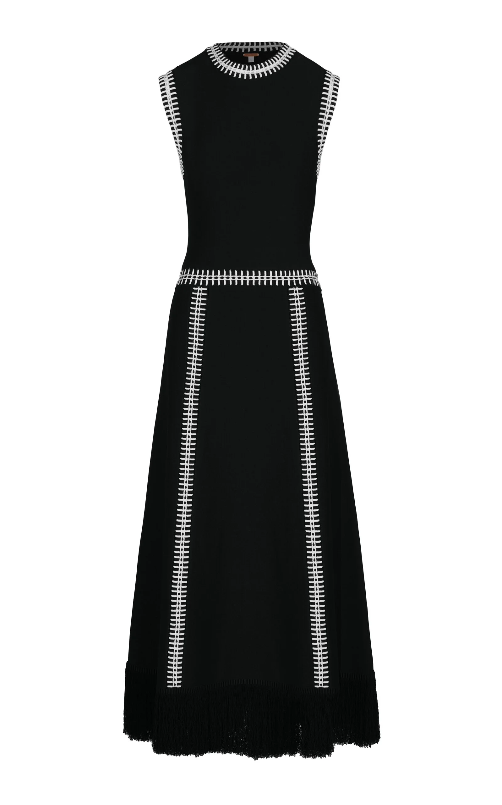 A sense of free-flowing abundance defines the Resort lineup from the Colombian designer, who calls the color palette for this collection “warm, moody, and unforgettable.” This sleeveless knit dress is designed with a fitted bodice and an A-line skirt with ample swing. ‘Holiday’ is constructed from a compact knit framed by signature linear embroidery and textured fringing. For a coordinated look, place the ‘Eternal’ cardigan over your shoulders. PRODUCT DETAILS - Resort ‘26 - Slip on - Composition: 83% viscose, 17% polyester - Dry clean - Imported