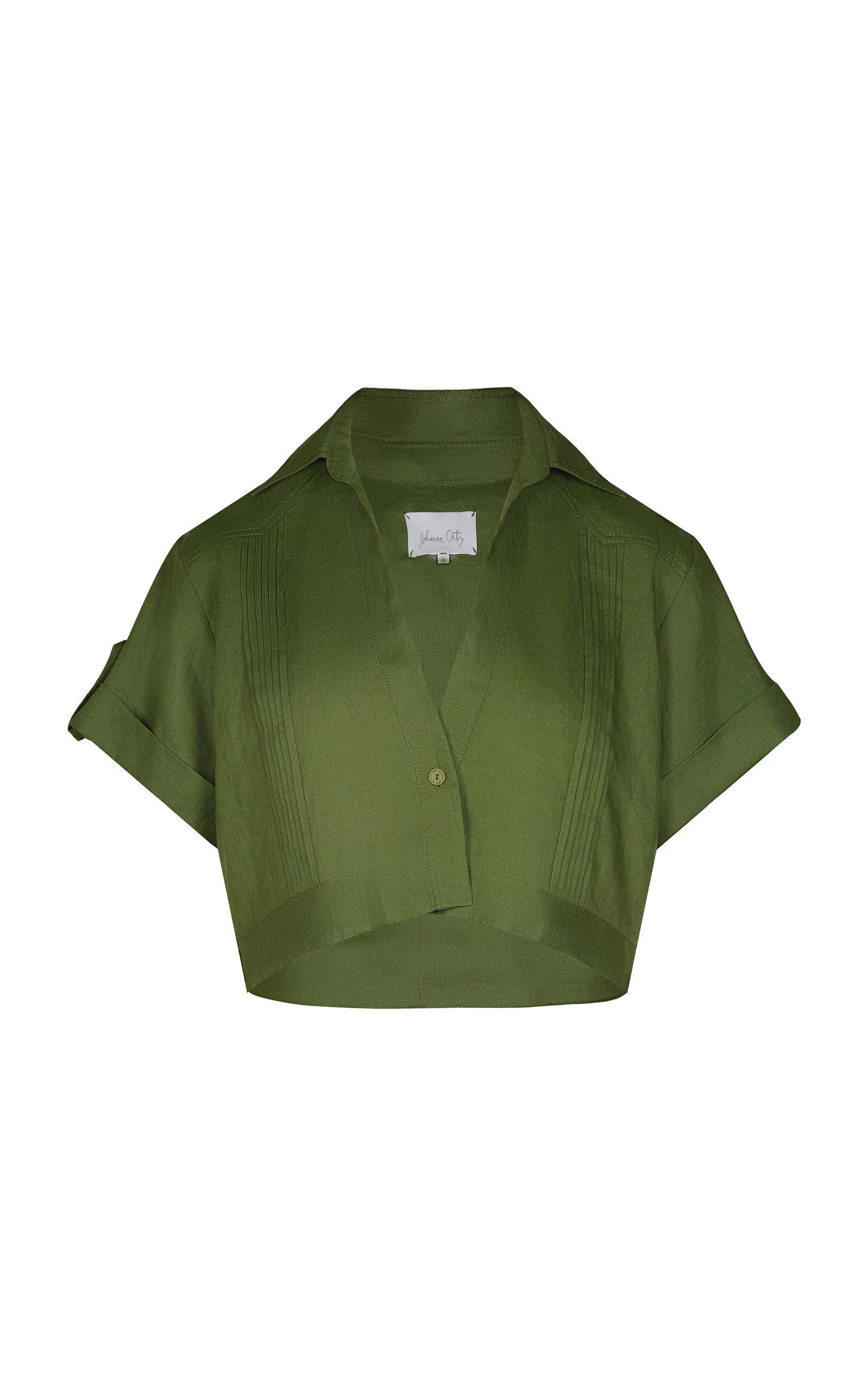 PRODUCT DETAILS - Slim fit, short sleeves, pointed collar, cropped length - Button fastening - Composition: 100% Linen - Color: green - Hand wash - Resort '25