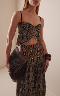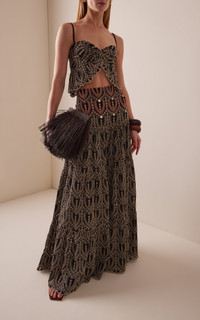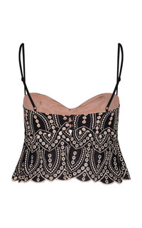 Lunch Date Embroidered Cotton-Blend Crop Top black/white