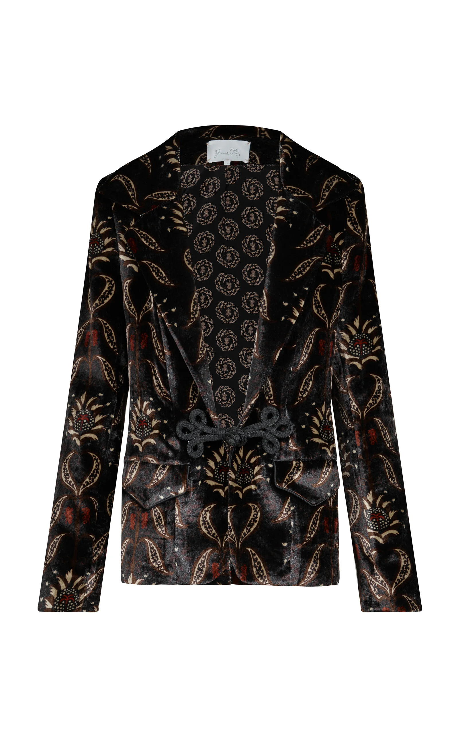 PRODUCT DETAILS - Regular fit, notch collar, abstract tropical printed throughout - Front Button Closure - Lined - Composition: 82% Viscose, 18% Silk - Color: multi - Dry Clean Only - Fall-Winter '25