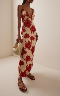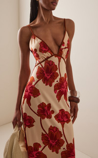 PRODUCT DETAILS - Regular fit, deep V neck line with petite straps, floral printed throughout, maxi dress - Slip-On - Unlined - Composition: 96% Viscose, 4% Elastane - Color: multi - Dry Clean Only - Pre-Fall 25'
