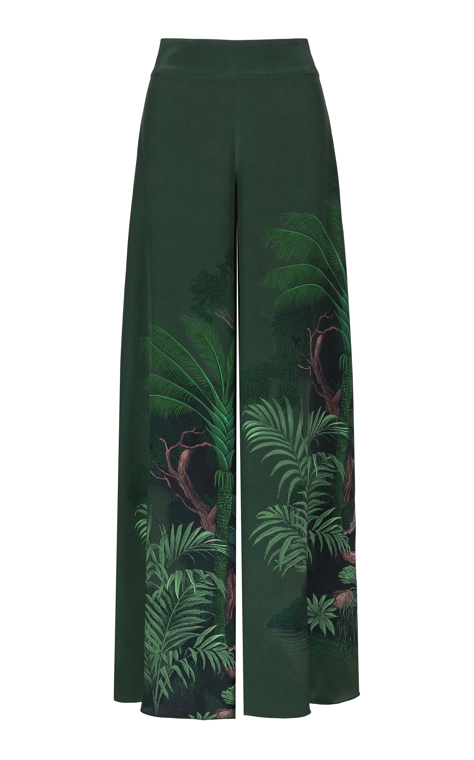 The Colombian talent harnesses her expertise of barefoot glamour—and her relationships with various artisanal communities—to create a richly woven, patterned display of chic occasion wear and accessories that transcend seasons and hemispheres. These ‘Musical’ pants are cut with a high-rise waist and a fluid wide leg. They’re fashioned from silk-satin featuring a bespoke print inspired by Colombia’s riverside landscapes, echoed on the coordinating blouse. PRODUCT DETAILS - Spring/Summer ‘26 - Concealed zip fastening - Composition: 100% silk - Dry clean - Made in Colombia