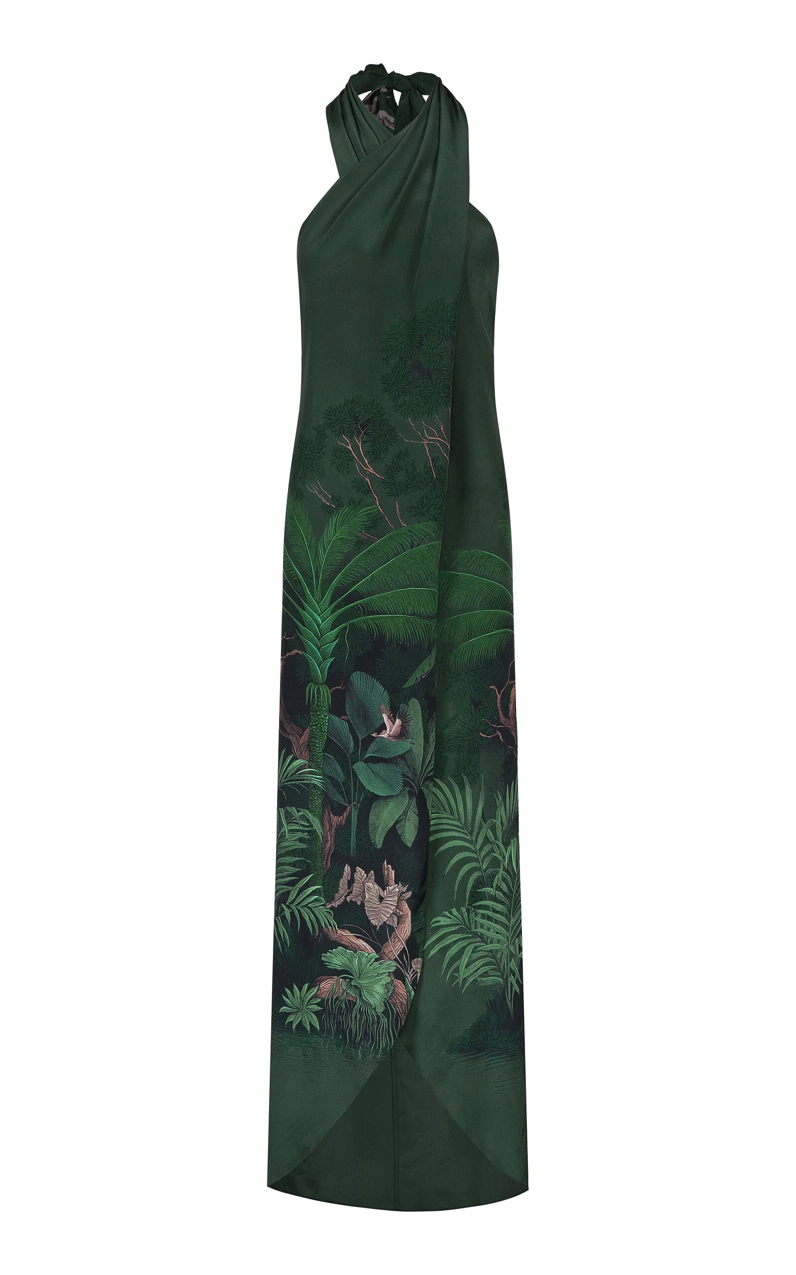 The Colombian talent harnesses her expertise of barefoot glamour—and her relationships with various artisanal communities—to create a richly woven, patterned display of chic occasion wear and accessories that transcend seasons and hemispheres. ‘Silent Water’ is a dreamy longline blouse that crosses over and fastens around the neck before falling freely through the frame. This version is delivered in a verdant silk-satin to match the coordinating ‘Musical’ pants. PRODUCT DETAILS - Spring/Summer ‘26 - Tie fastening - Composition: 100% silk - Dry clean - Made in Colombia