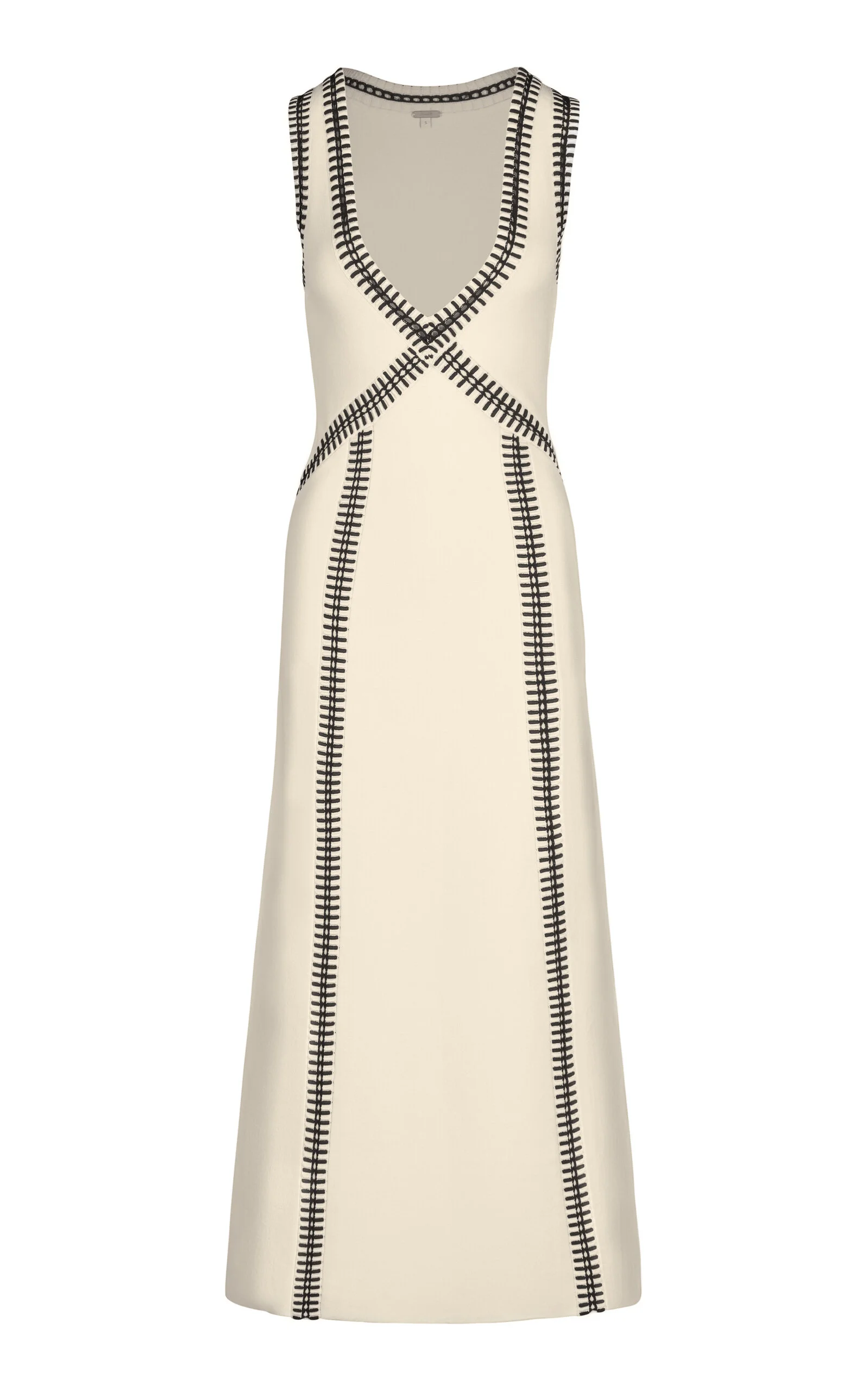 A sense of free-flowing abundance defines the Resort lineup from the Colombian designer, who calls the color palette for this collection “warm, moody, and unforgettable.” The label employs a sleek compact knit to fashion ‘Spiritual’ enhancing it with contrasting linear stitches. The profile is fitted through the waist with a slight A-line skirt which finishes just above the ankle. Dress it up or down with flat sandals or heels. PRODUCT DETAILS - Resort ‘26 - Slip on - Composition: 83% viscose, 17% polyester - Dry clean - Imported