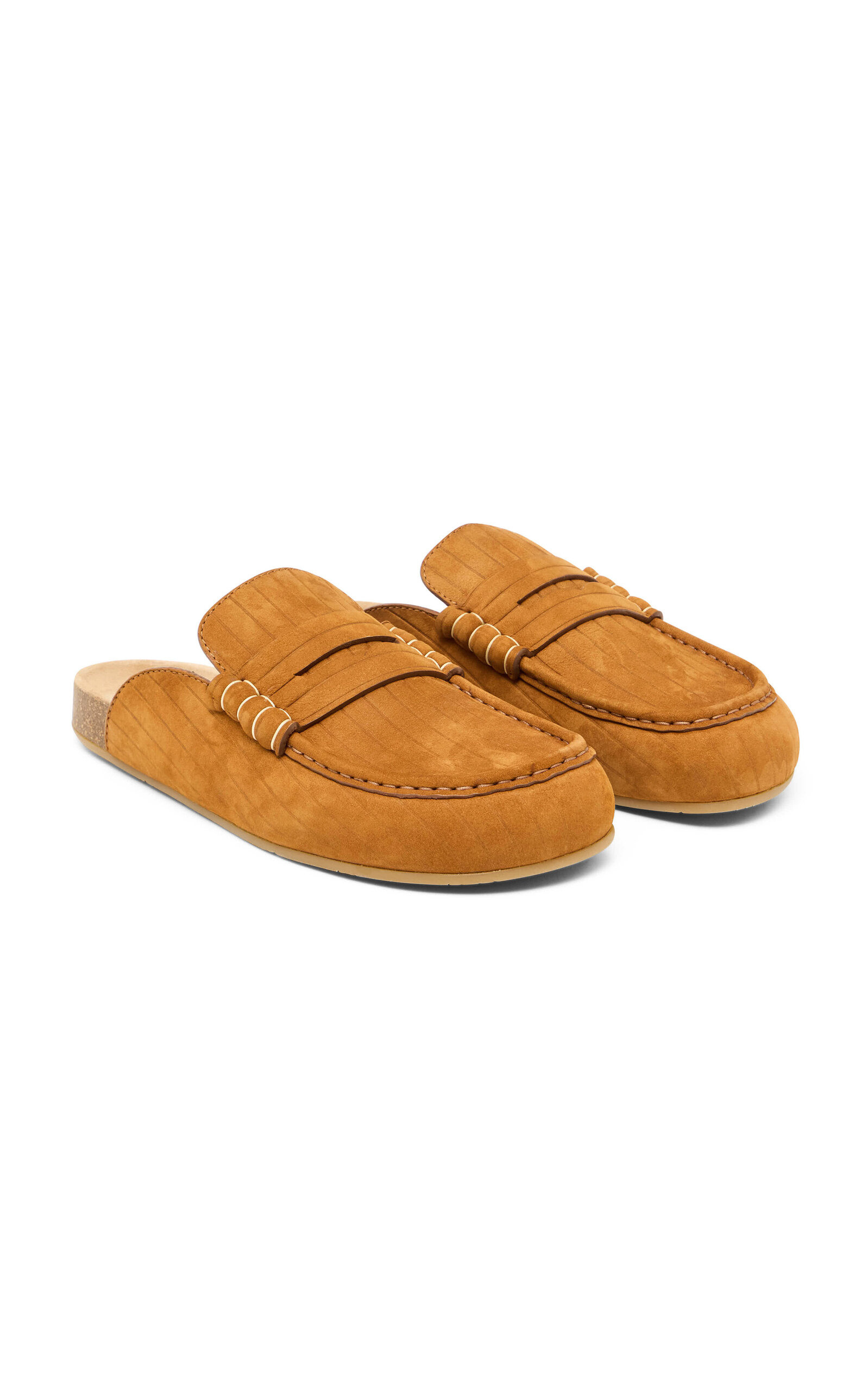 Known for his idiosyncratic contradictions in design, Jonathan Anderson masterfully imbues opposing sensibilities into every one of his luxe garments. Slip-on mules made from pinstriped suede with loafer stitching. PRODUCT DETAILS - Slip on - Composition: suede - Designer color: Caramel - Made in Italy