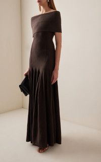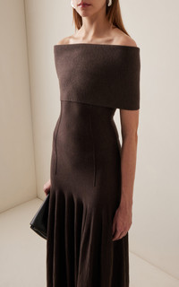 Ava Off-The-Shoulder Wool Maxi Dress brown