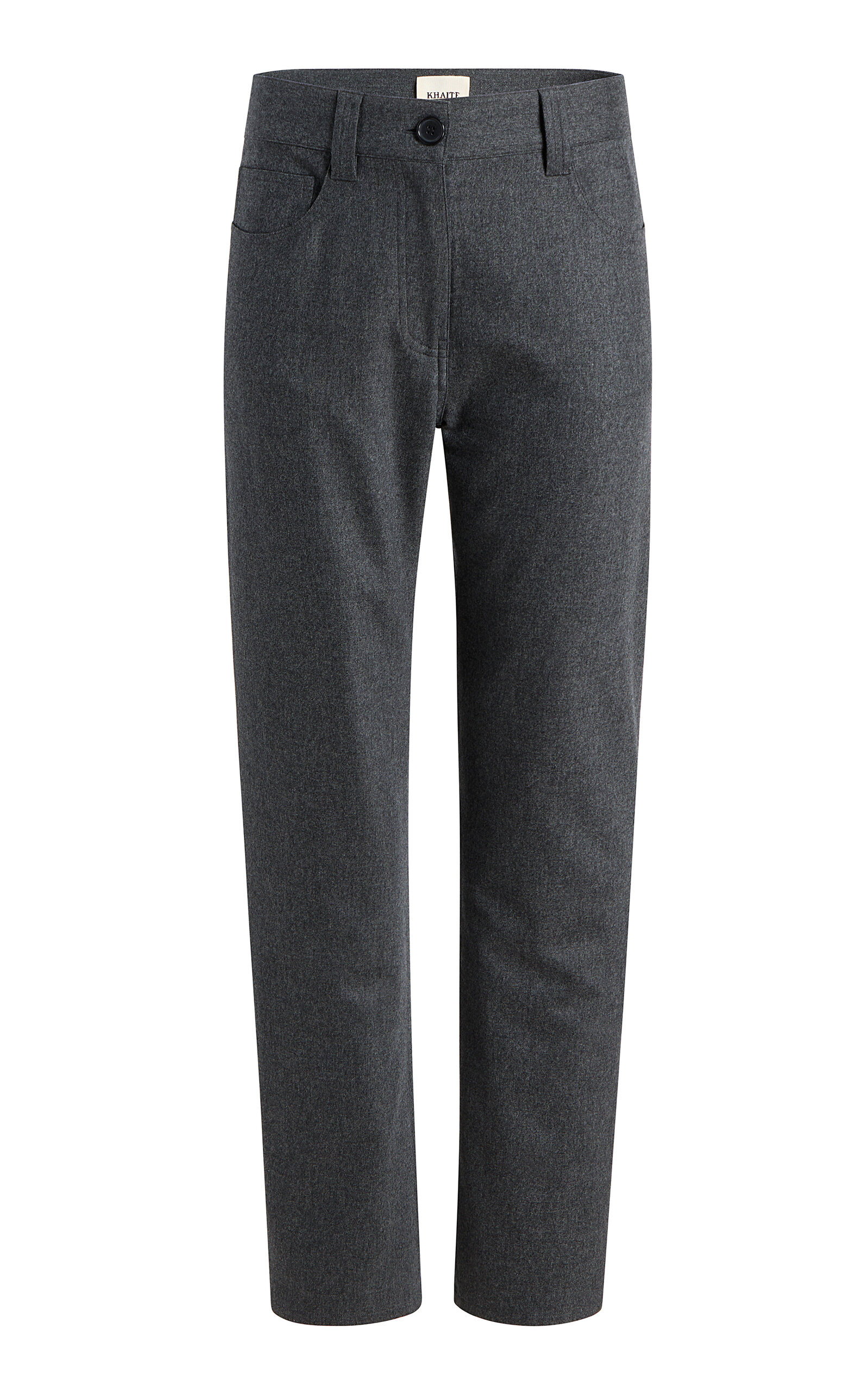 PRODUCT DETAILS - Slim fit, mid rise, belt loops, pockets, straight leg - Zipper and button fastening - Composition: 100% Wool - Color: Storm - Dry clean - Fall '25